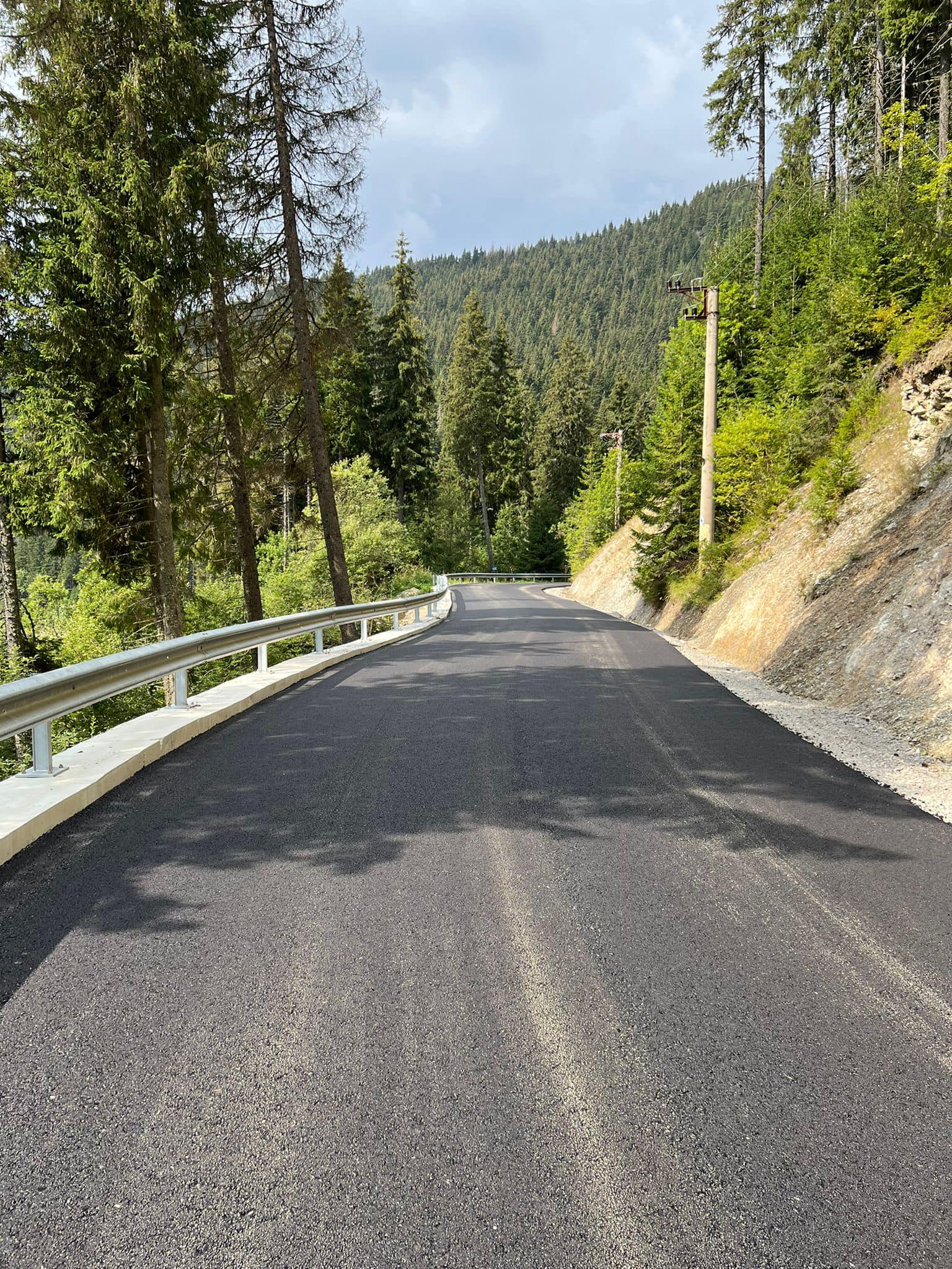 Totodată, mă bucur să vă anunț că, în paralel cu turnarea covorului asfaltic, se mai lucrează la consolidări, terasamente, dar și la parapeții de protecție.
