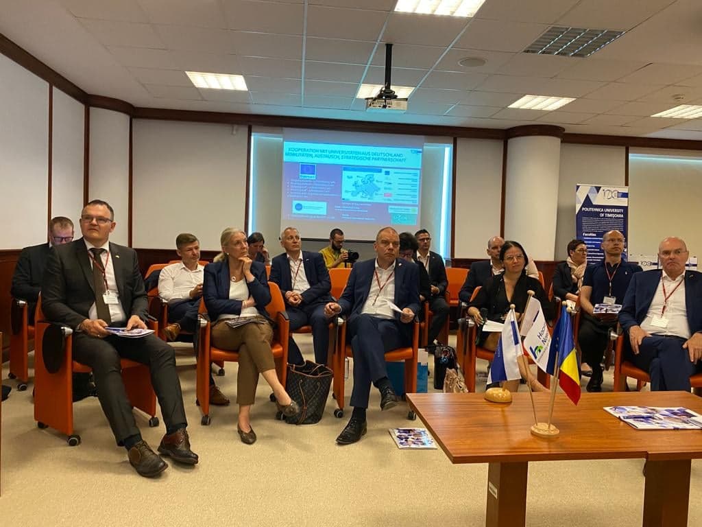 Din partea delegației germane, prof.dr. Jörg Wagner, președintele Universității de Științe Aplicate Hochschule Nordhausen a prezentat instituția pe care o conduce, o universitate mică, dar foarte dinamică, cu programe de studiu și de cercetare axate pe domenii noi, de actualitate, cum sunt energiile regenerabile, economia circulară și protecția mediului, subliniind beneficiile reciproce ale unei colaborări de lungă durată cu Universitatea Politehnica Timișoara.