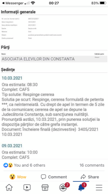 “2. Asociația elevilor din Constanța a înaintat un apel în numele elevilor din România cerând extinderea anului școlar. Asociația nu este în legalitate, plus că nu a respectat procedura. A încălcat Legea 544/2001, act normativ ce reglementează și susține consultarea publica a informațiilor de interes general pentru societate și accesul către informațiile de interes și încă o serie de alte proceduri. Nu a existat nici o consultare la nivel național cu elevii, plus că multe școli nu sunt cuprinse în astfel de asociații de elevi.” Demersul elevilor in instanță a fost respins.
