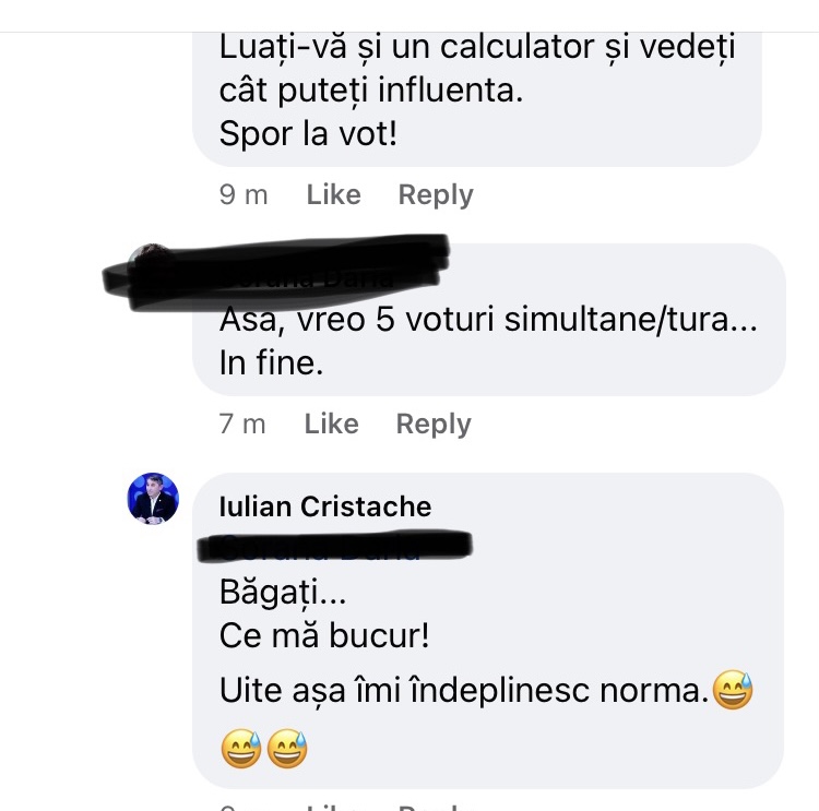 Cum poți ca ministru să te bazezi pe cineva care spune, citez: “Luați-vă și un calculator și vedeți cât puteți influenta. Spor la vot!” și ” Băgați… Ce mă bucur! Uite așa îmi îndeplinesc norma. “