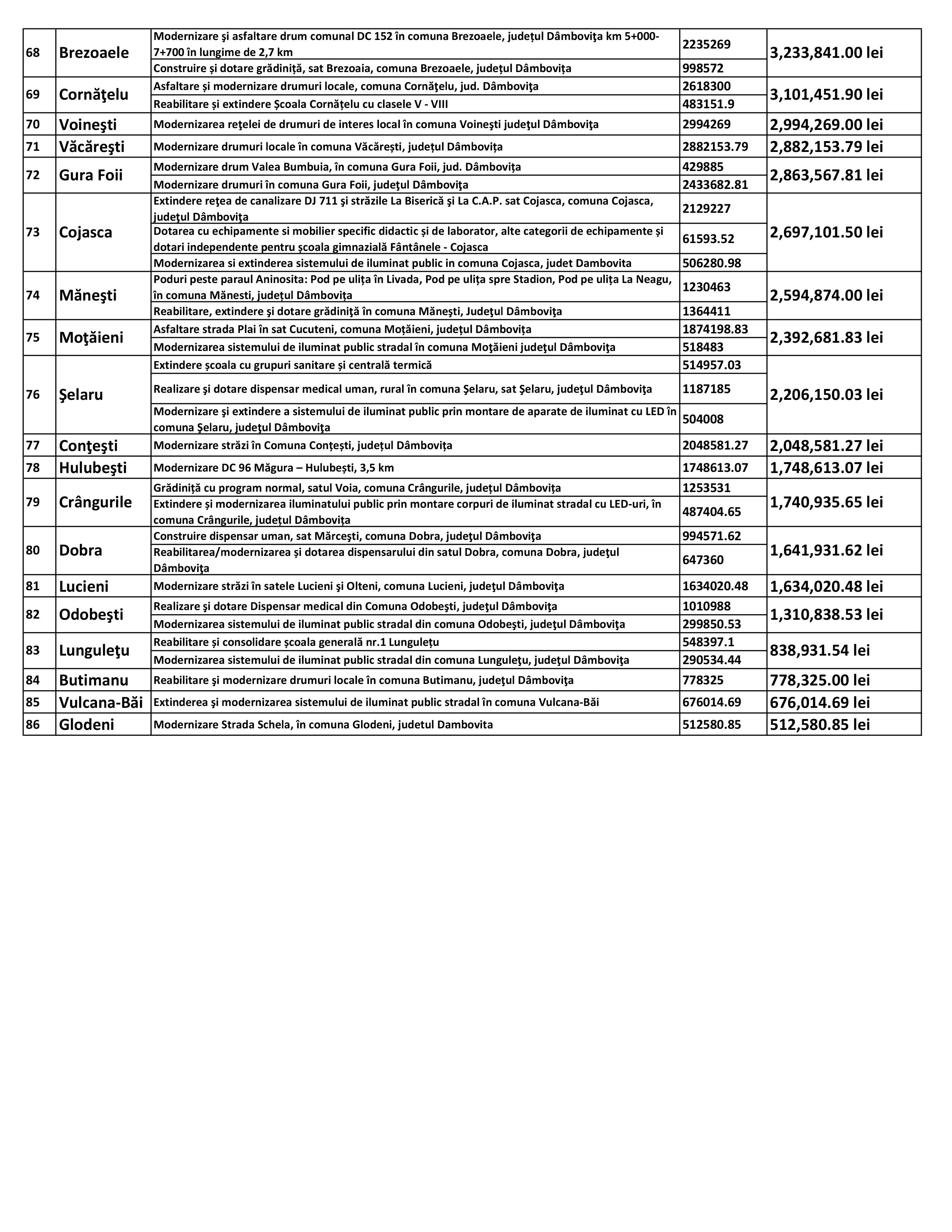 Județul Dâmbovița a luat 126 de milioane de lei, iar pe locul doi este municipiul Târgoviște cu 33 de milioane de lei. ( detalii in foto)