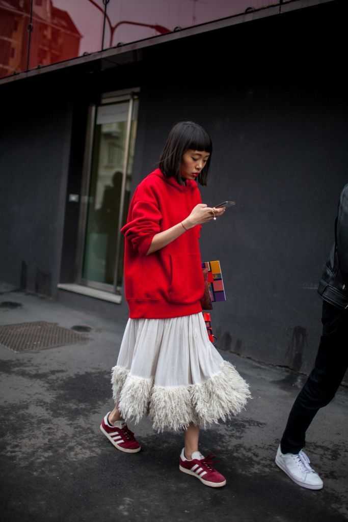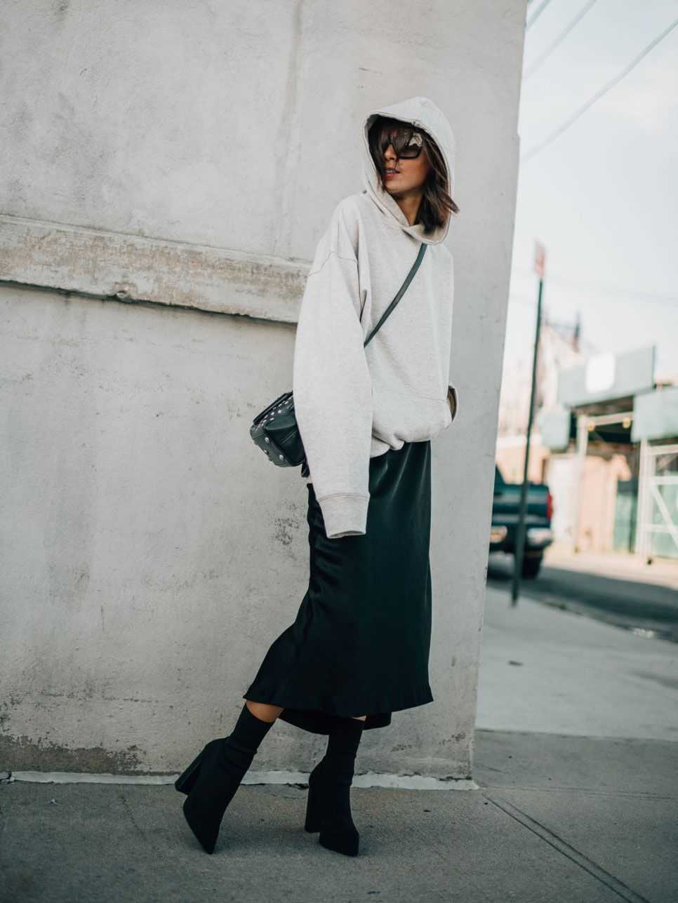 3. Trecem deja la combinații mult mai îndrăznețe – poartă hanoracul cu o fustă din garderoba ta. Indiferent de model, ai încredere că vei fi cool și adoptă o atitudine pe măsură!