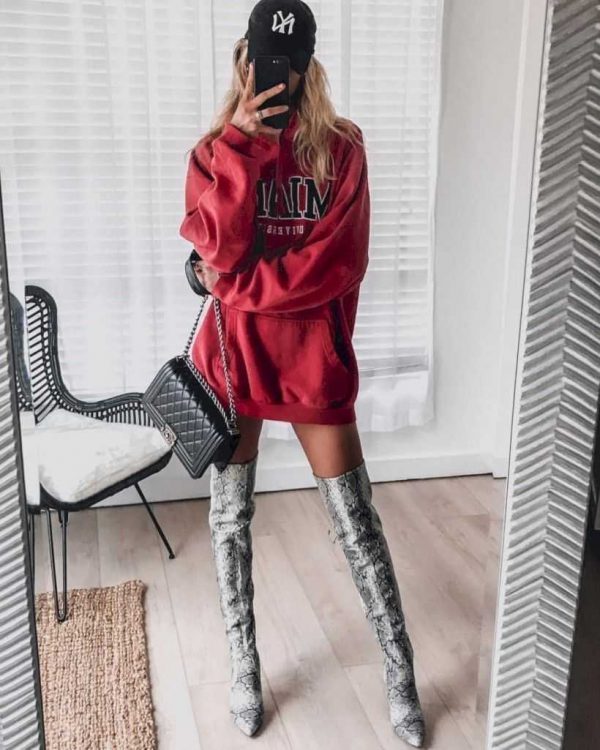 Cu siguranță, hanoracul asortat cu o pereche de cizme înalte va atrage toate privirile. Poartă cu încredere outfit-ul dacă îți dorești să ajungi în centrul atenției.