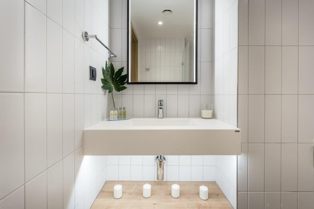 Lumina, este și ea important în designul nordic.Iluminatul LED KUMA, montat sub lavoar, vine în completarea unui design unitary și generează o lumină elegantă, difuză,”hygge”. LED-urile de sub marginea blatului, sunt un detaliu unic, foarte apreciat atât pentru stilul practic, dar și pentru designul deosebit.