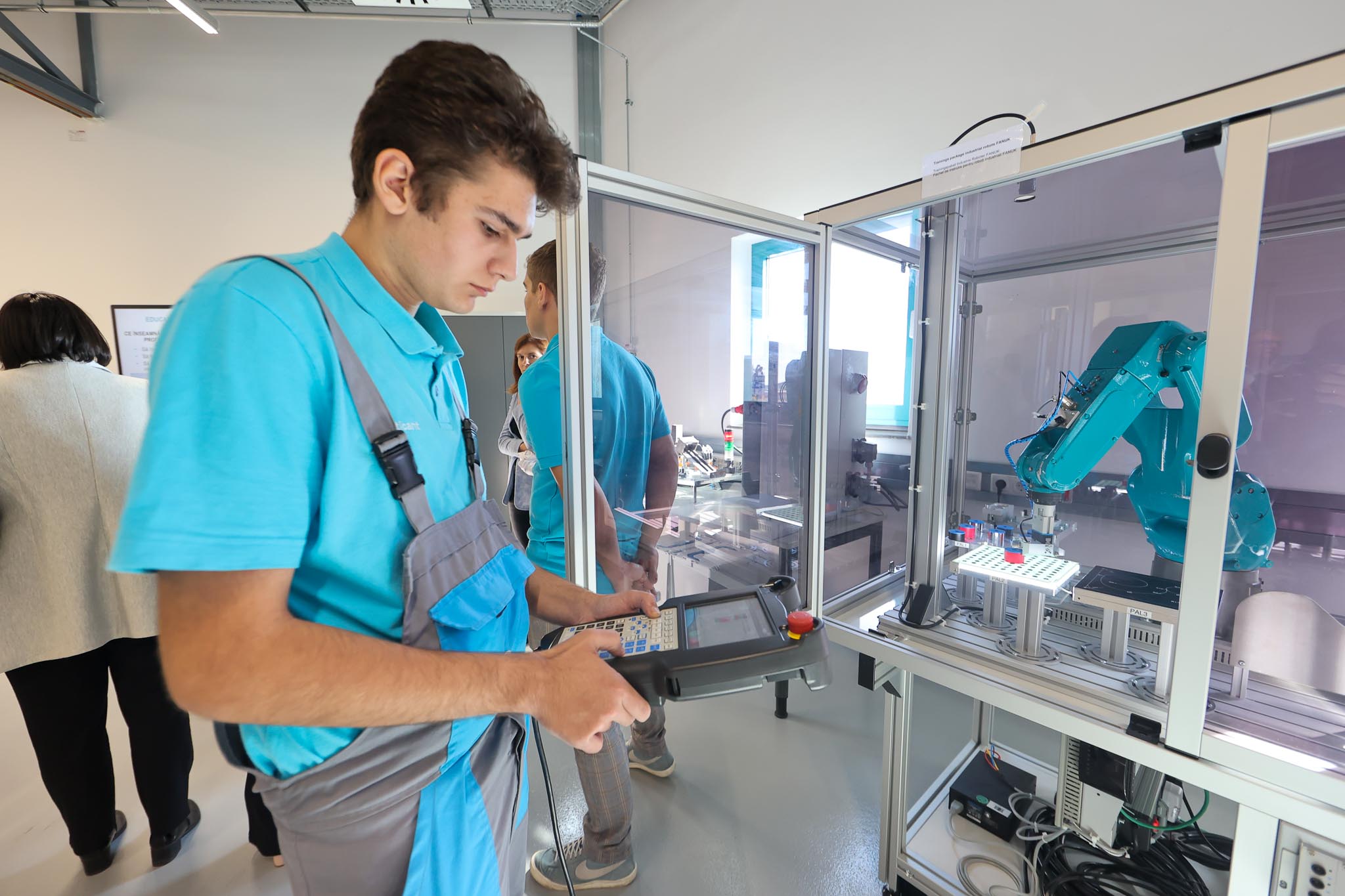 Timișoara, 6 octombrie 2022 DRÄXLMAIER Group a inaugurat un nou atelier școală la Timișoara destinat cursurilor de teorie aplicată pentru elevii Liceul Tehnologic Energetic “Regele Ferdinand I”, care studiază în cadrul programului de educație profesională duală susținut de companie. Valoare investiției este de 1,2 milioane de euro. Atelierul are o suprafață de 500 de mp, iar elevii au posibilitatea să transpună teoria în practică, folosind un robot de ultimă generație, imprimantă 3D, precum și stații electropneumatice și electrice moderne.