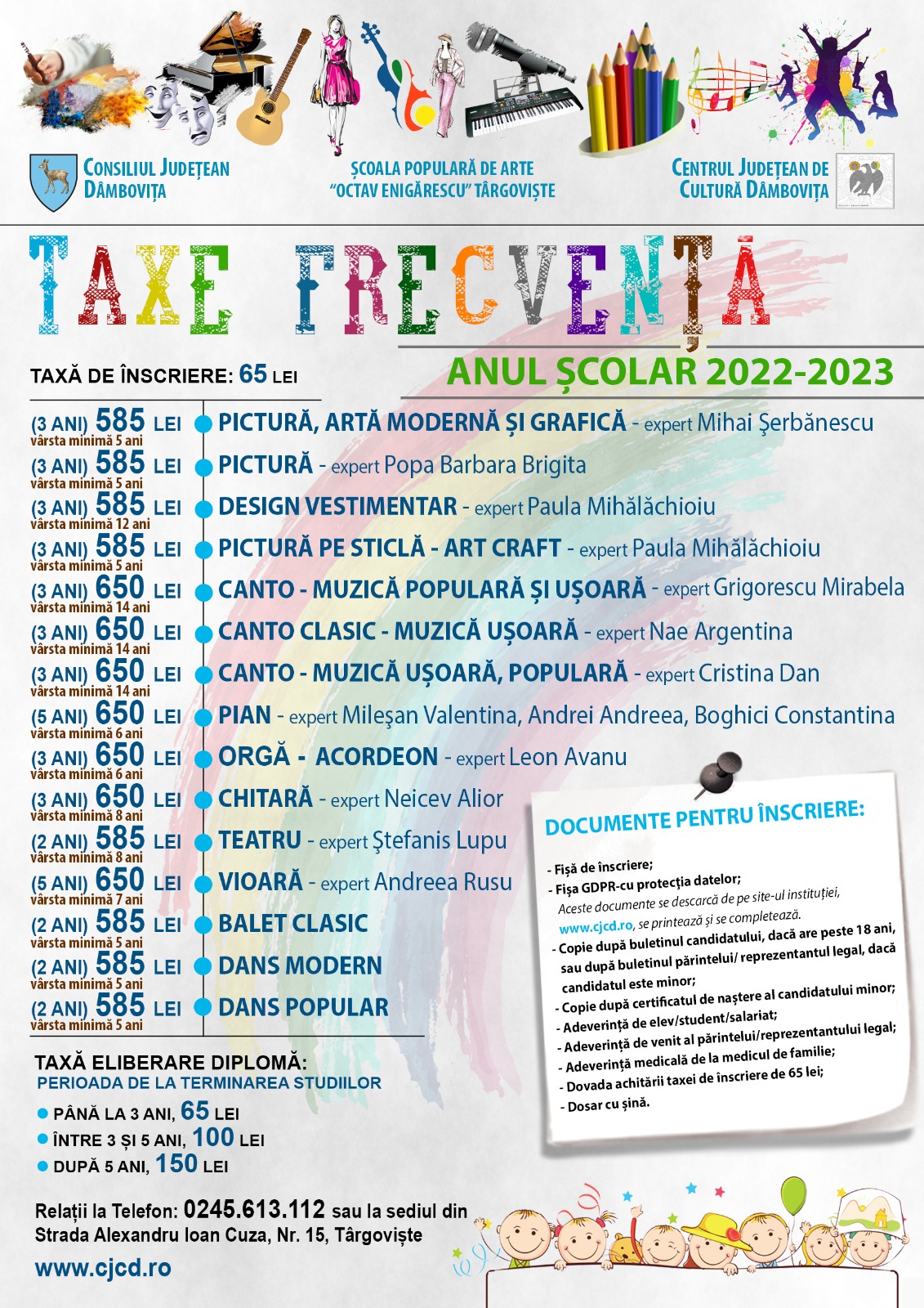 Începând cu data de 2 septembrie 2022, debutează înscrierile la Școala Populară de Arte „Octav Enigărescu”, din cadrul Centrului Județean de Cultură Dâmbovița.