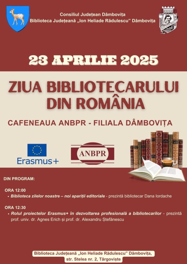 Miercuri, 23 aprilie 2025, începând cu orele 12.00, Biblioteca Județeană „I. H. Rădulescu” Dâmbovița organizează un program dedicat Zilei Bibliotecarului din România.