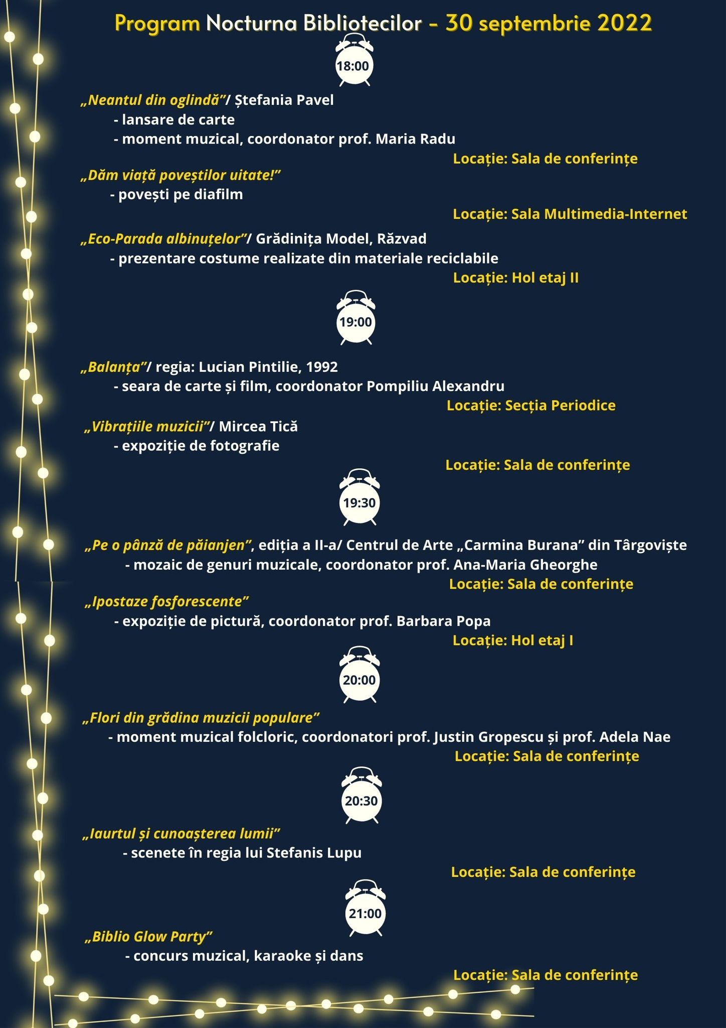 Vineri, 30 septembrie 2022, orele 18.00-23.00, Biblioteca Judeţeană „I. H. Rădulescu” Dâmboviţa vă invită la „Nocturna bibliotecilor: Share location @ BIBLIOTECĂ”, ediția a XIII-a.