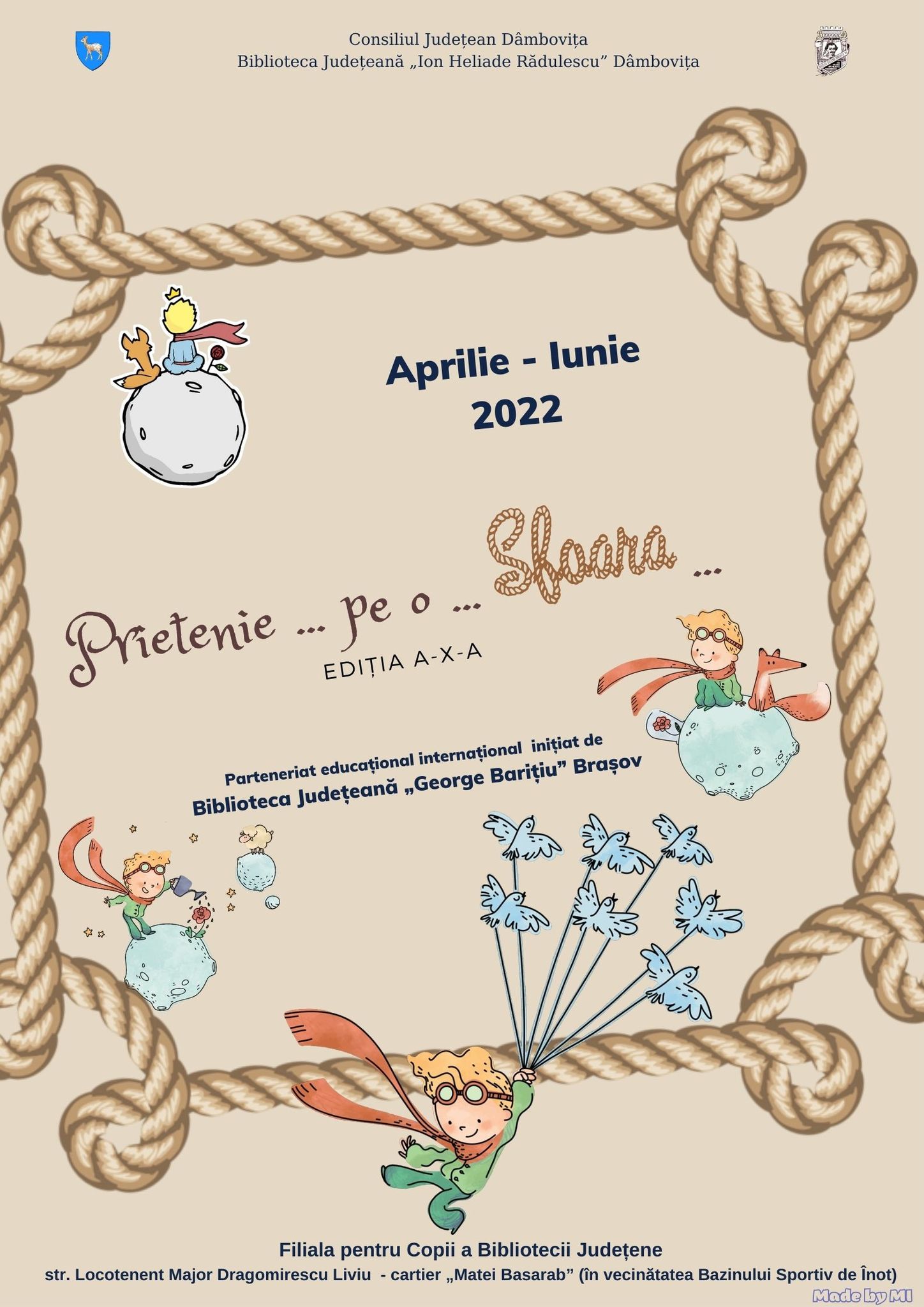 Biblioteca Județeană „Ion Heliade Rădulescu” Dâmbovița se alătură și anul acesta Parteneriatului Educațional Național „Prietenie …pe o… sfoară…” inițiat de Biblioteca Județeană „George Barițiu” Brașov. Aflat la cea de-a zecea ediție, acțiunile parteneriatului sunt dedicate promovării literaturii pentru copii şi stimulării interesului pentru lectură a celor mici. Sunt încurajate să se alăture bibliotecile publice, organizațiile neguvernamentale, cluburile copiilor sau orice alte organizații care desfășoară activități cu copiii și susțin prioritățile parteneriatului.