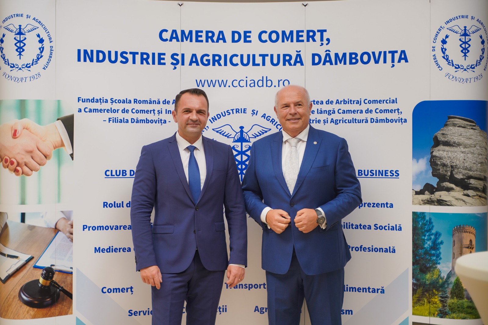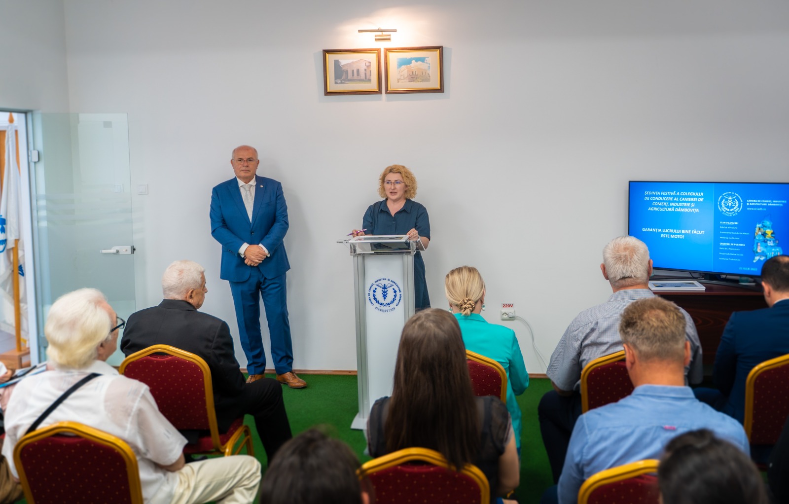 Astăzi, la sediul Camerei de Comerț, Industrie și Agricultură Dâmbovița a avut loc, cu ocazia împlinirii a 32 de ani de activitate de la (re) înființare, Ședința Festivă a Colegiului de Conducere al Camerei, ședință prezidată de către domnul Valentin Calcan, Președintele Camerei de Comerț Dâmbovița.