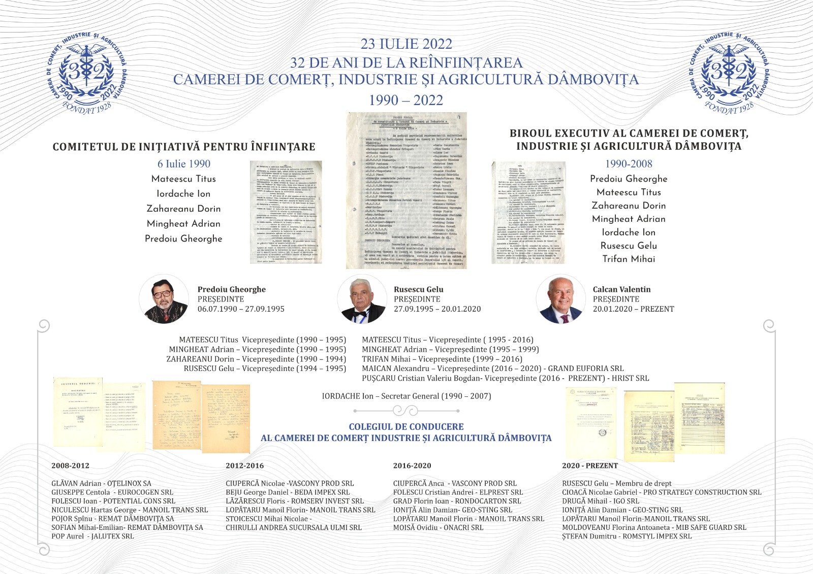 Sunt doar primii 32 de ani în care am venit în sprijinul antreprenorilor și al firmelor din județul Dâmbovița și ne-am propus să avem o economie liberă și digitală, o comunitate de afaceri puternică, cu privirea în viitor, astfel încât experiența antreprenorială acumulată să constituie un valoros capital.