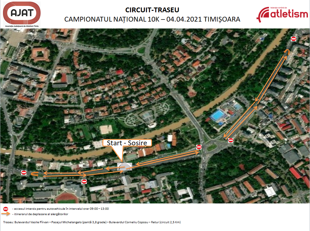Federația Română de Atletism împreună cu Asociația Județeană de Atletism Timiș cu sprijinul Direcției Județene pentru Tineret și Sport Timiș și Casa de Cultură a Timișoarei organizează în Timișoara la data de 04.04.2021 începând cu ora 10:00, CAMPIONATUL NAȚIONAL DE 10 Km – Finala pentru Seniori, Seniori U23 și Juniori 1 (competiție planificată în calendarul FRA), pe un traseu de 2,5 km, special amenajat pe itinerarul B-dul Vasile Pîrvan – Pasajul Michelangelo – B-dul Corneliu Coposu – Retur.