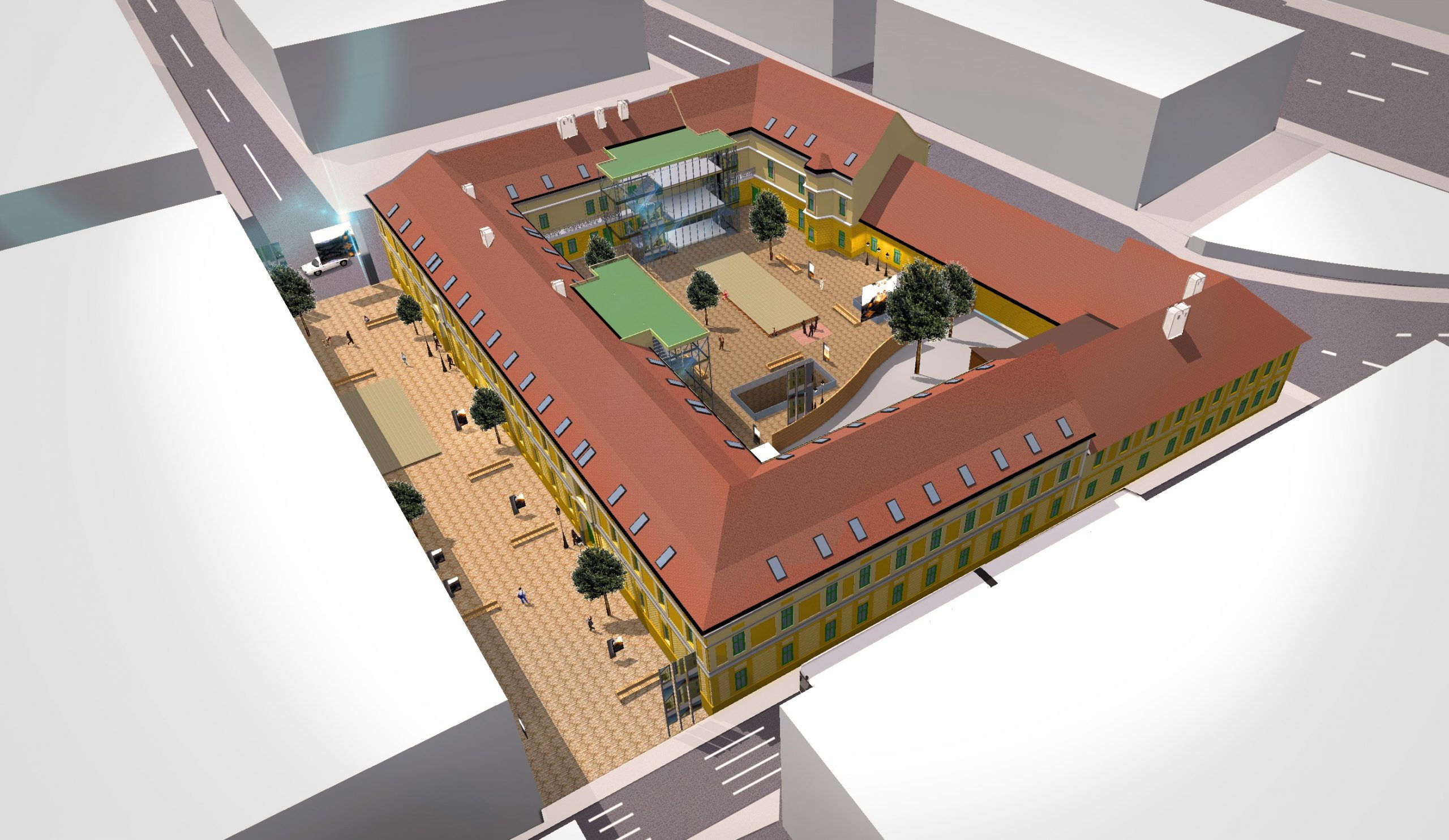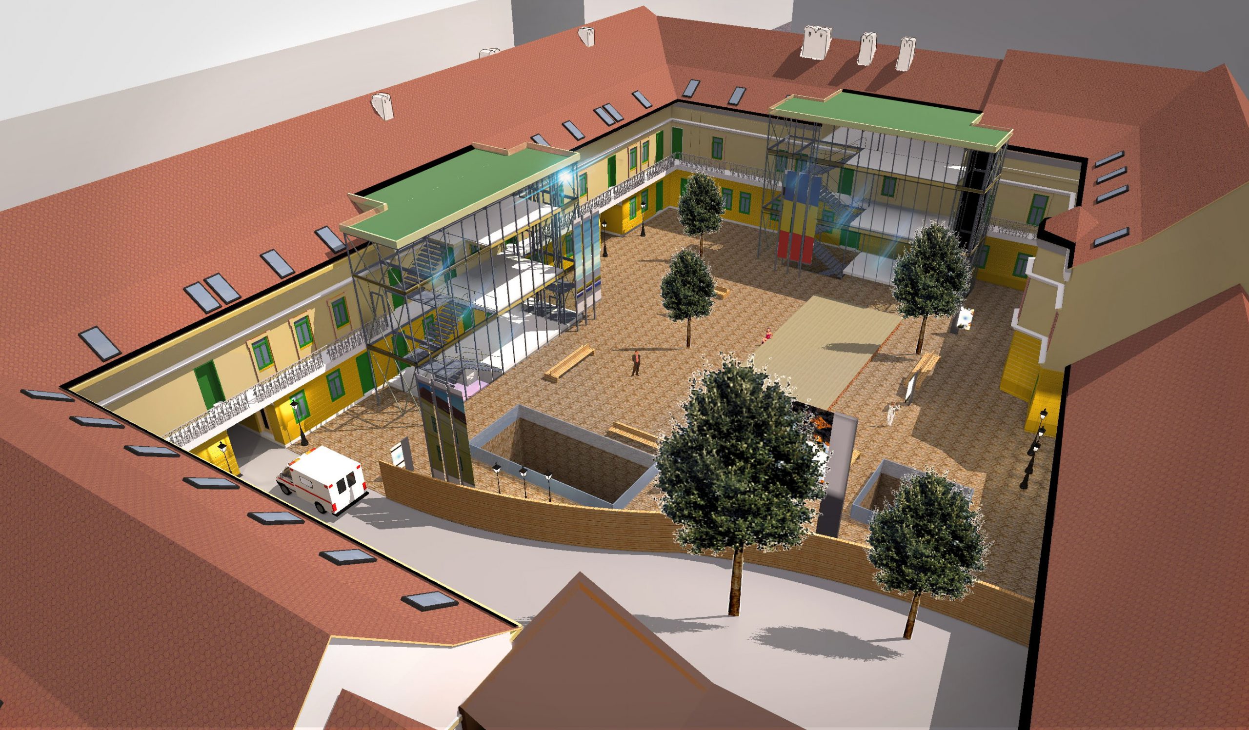 Se vor face și lucrări de amenajare a curții interioare, conferindu-i-se un caracter public, pentru desfășurarea unor evenimente culturale.