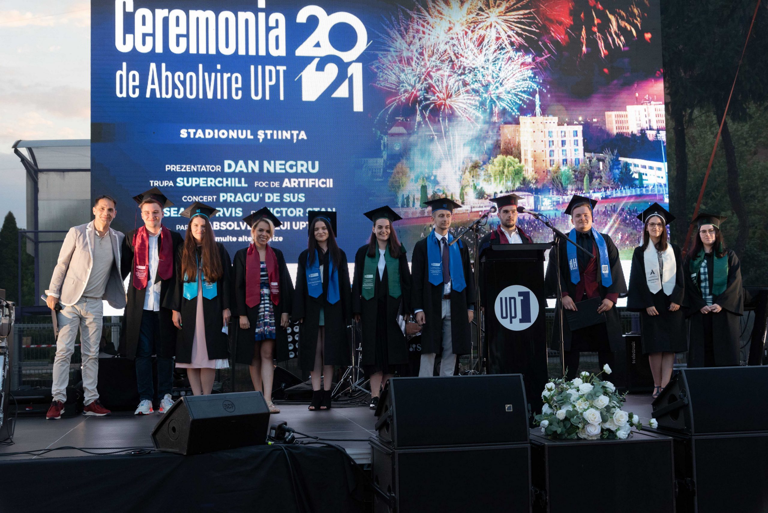 Prima generație din cel de-al doilea secol de existență a Universității Politehnica Timișoara a finalizat cursurile. După anii petrecuți în băncile amfiteatrelor, la cursuri, seminarii, laboratoare, iar în ultima perioadă în fața calculatorului, în cadrul școlii online, cei care au încheiat ciclul de licență au participat sâmbătă, 3 iulie 2021, pe Stadionul Știința, la Ceremonia de Absolvire 2021, un spectacol menit să le reamintească momentele frumoase petrecute în perioada studenției acum, când se pregătesc să pășească, cu mândrie, pe noul drum care li se așterne în față.