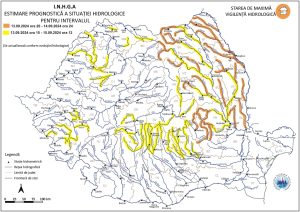 Ca urmare a precipitaţiilor înregistrate, a celor prognozate şi propagării, se pot produce scurgeri importante pe versanţi, torenţi, pâraie, viituri rapide pe râurile mici cu posibile efecte de inundaţii locale şi creşteri de debite şi niveluri cu posibile depăşiri ale COTELOR DE ATENŢIE pe râurile din bazinele hidrografice: Crișul Negru – bazin amonte S.H. Suștiu și afluenții aferenți sectorului aval S.H. Șuștiu, Crișul Alb – bazin amonte S.H. Vața de Jos și afluenții aferenți sectorului aval S.H. Vața de Jos, judeţele: Hunedoara, Arad și Bihor, dar și creşteri importante de debite şi niveluri cu posibile depăşiri ale COTELOR DE PERICOL pe râurile din bazinele hidrografice: Prut – afluenții aferenți sectorului aval S.H. Fălciu – amonte confluență cu râul Elan, Elan – bazin aval S.H. Poșta (județele: Vaslui și Galați), Corazel (afluent al râului Bârlad) (județul Galați).