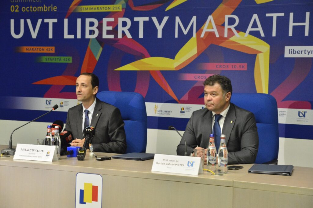 Rectorul UVT, Marilen Gabriel Pirtea: „Universitatea de Vest din Timișoara (UVT), cea mai importantă universitate comprehensivă din vestul țării, promovează excelența, atât prin programe ale științelor și cercetării, cât și prin cele din domenii ale artelor și sporturilor. La UVT, pentru toate facultățile și programele de licență, am setat un standard prin care fiecare student urmează disciplina Educație fizică timp de 4 semestre, în primii 2 ani de studii, pentru dezvoltarea completă și armonioasă. Pe de altă parte, ne-am implicat și dincolo de limitele comunității noastre universitare și am creat un eveniment dedicat întregului oraș și chiar multor iubitori ai sportului din țară și străinătate, UVT Liberty Marathon, ajuns la ediția a cincea în acest an, un eveniment competițional tot mai iubit și popular. Din partea întregii comunități academice a UVT, îi mulțumesc domnului Mihai Covaliu, o personalitate semnificativă a sportului românesc, pentru că este în acest an semnatarul medaliei UVT Liberty Marathon, un gest important pentru miile de participanți la maratonul din octombrie 2022, care se vor bucura, o dată în plus, și pentru originalitatea semnăturii speciale de pe medaliile pe care le vor primi. Împreună cu COSR, vom transmite la nivel național ideea de libertate și armonie prin sport, pentru că UVT Liberty Marathon este o experiență construită cu energie, efort și multă motivație, într-o comunitate în care fiecare își pune amprenta în transmiterea ideii de libertate mai departe.”