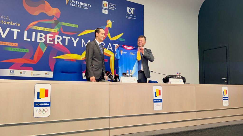 Astăzi, la sediul Comitetului Olimpic și Sportiv Român, a fost anunțat și semnat acordul de colaborare dintre Comitetul Olimpic și Sportiv Român (COSR) și Universitatea de Vest din Timișoara (UVT), prin care se stabilesc termenii unui parteneriat de lung parcurs consacrat consolidării sportului românesc. Acordul prevede implicarea în proiecte comune, utile transmiterii de mesaje comune, în care COSR se va afla alături de UVT, un puternic brand educațional, cu imagine bună la nivel național. COSR va participa la identificarea sportivilor și personalităților vieții sportive care vor primi invitații de participare la competiția internațională anuală „UVT Liberty Marathon”, ca personaje simbol ale mișcării sportive din România. La rândul său, Universitatea de Vest din Timișoara va asigura accesul gratuit al persoanelor propuse de Comitetul Olimpic și Sportiv Român la cursurile postuniversitare organizate de către UVT în diverse domenii (precum sunt cele de digitalizare a activităților de predare-evaluare sau asistență socială). De asemenea, prin acordul de colaborare a fost stabilit un format al desemnării campionilor olimpici care vor fi invitați să semneze medalia „UVT Liberty Marathon”, la fiecare dintre edițiile viitoare ale evenimentului.