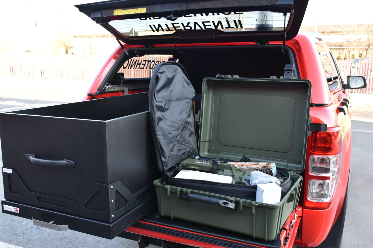 De asemenea, în dotarea autospecialei se află echipamente care permit executarea în siguranţă a misiunilor, precum detectoare de metale, costume de protecţie pirotehnică pentru personalul specializat, căşti şi veste de protecţie balistică, rucsacuri pentru transportul de explozivi.