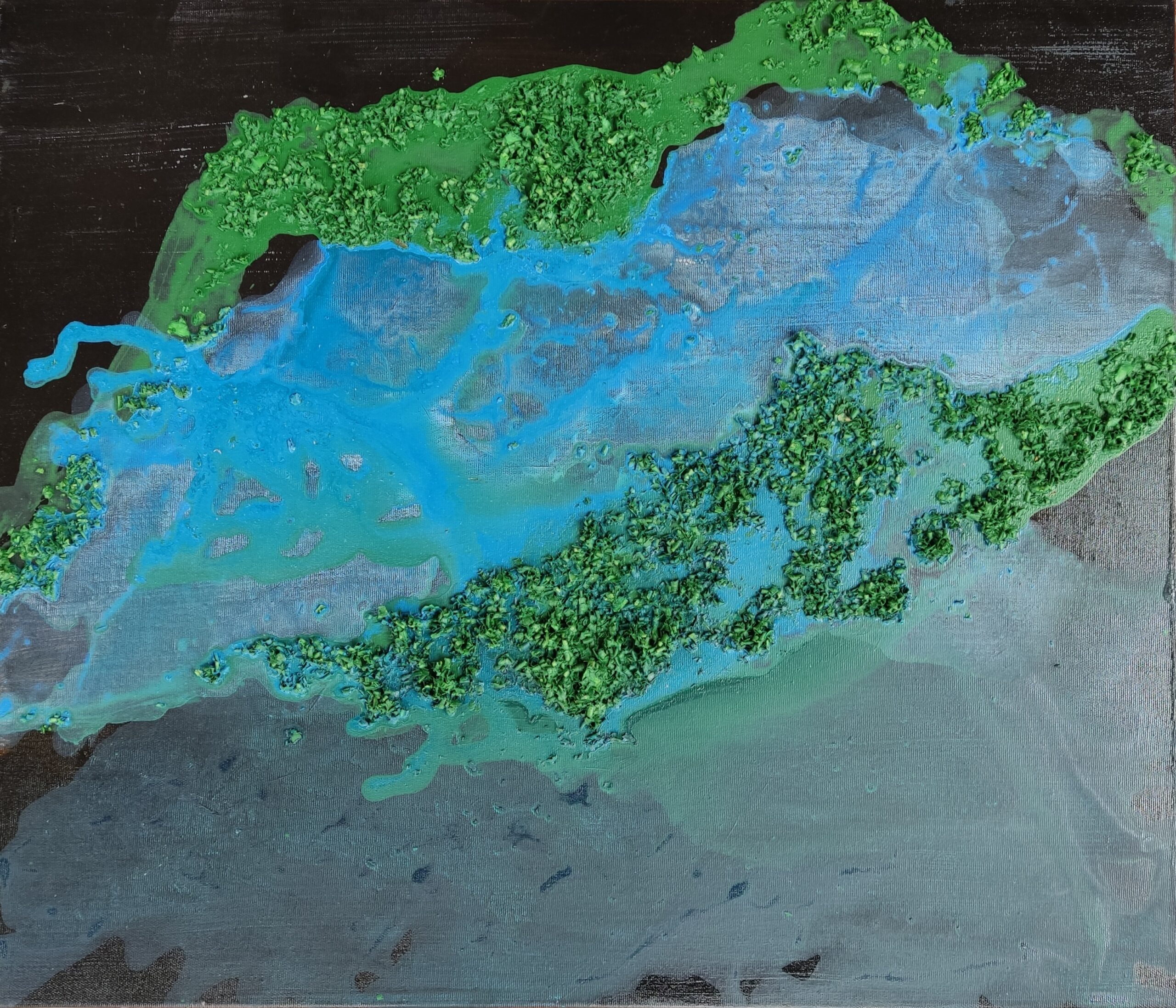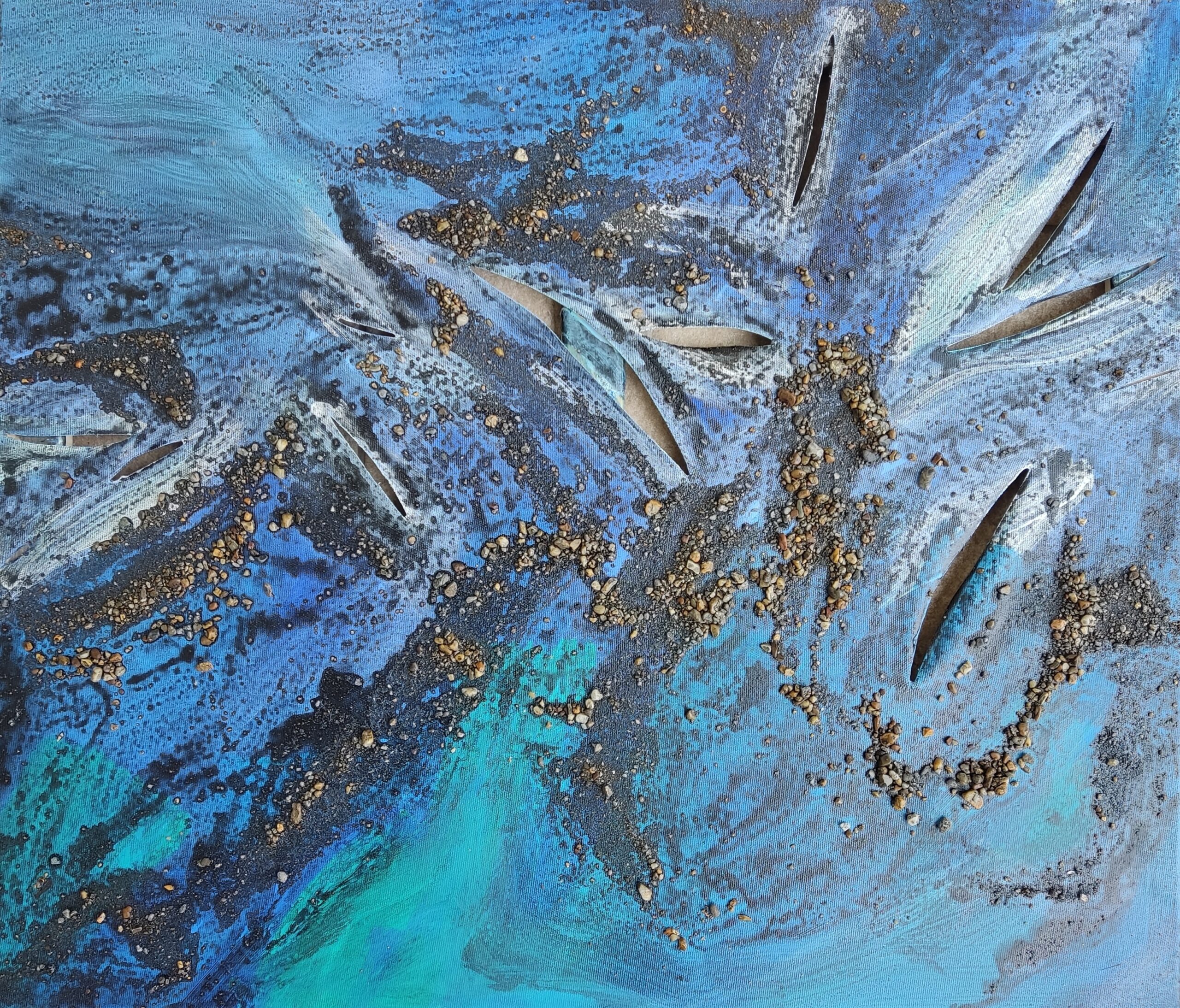 Între adânc și întindere, între aici și îndepărtat privirea modelează dorința de cunoaștere. Alegând ca modalități de exprimare mixajul dintre simțiri și sentimente, imaginile redau limbajul apelor nemărginite, iubirea întinderilor marine, farmecul ingenuu al protoistoriei… Având background verosimil fără joc de forțe latente, coexistența elementelor fizice și metafizice, obiective și subiective exprimă incertitudinea conștientă a speculației conduse intuitiv către viziuni revizuite despre misiunea și semnificația artei plastice contemporane.