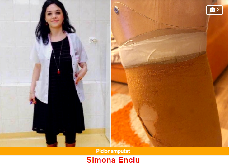 Cu un picior amputat, Simona Enciu are nevoie de o proteză pentru a duce o viață normală
