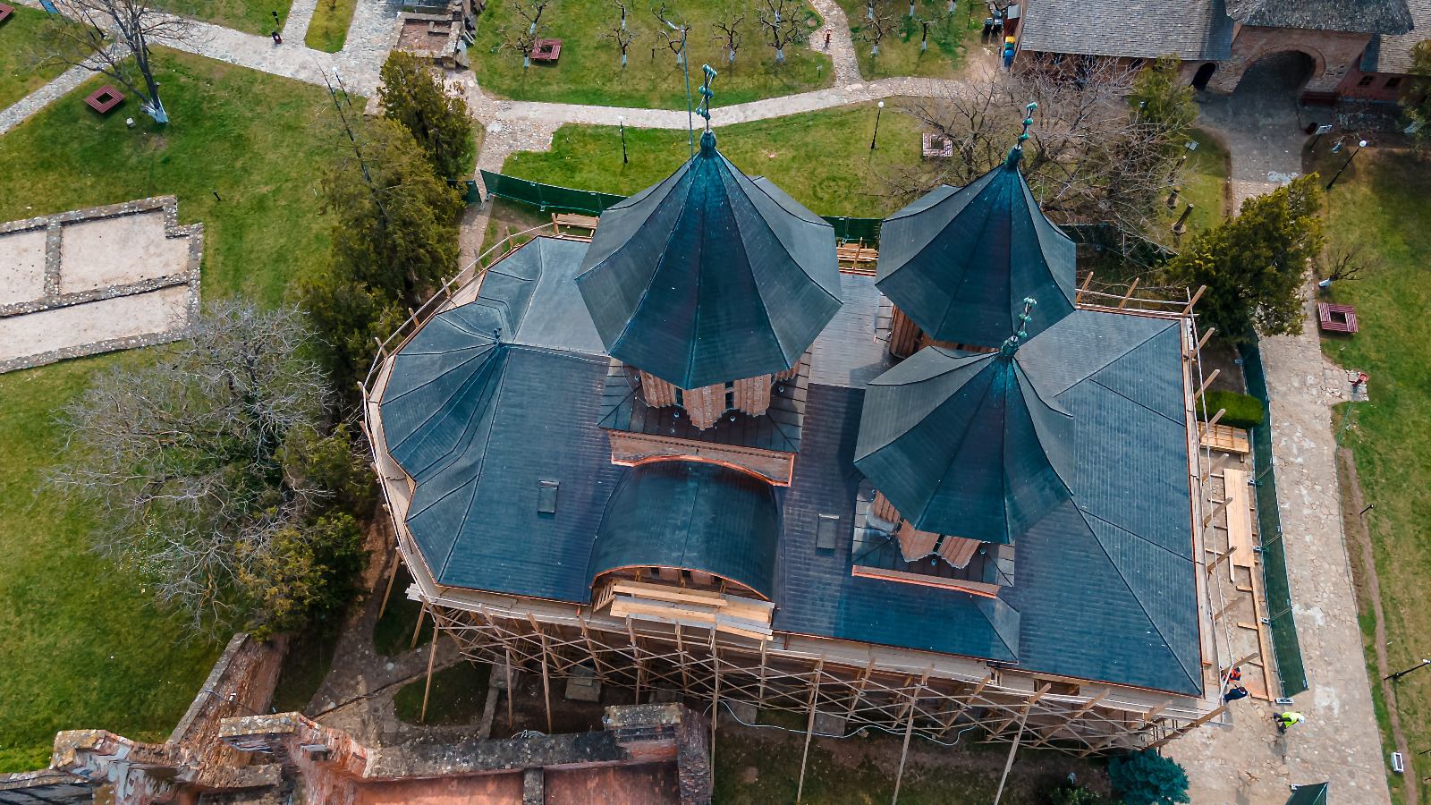 La Biserica Domnească, se lucrează la ultimele prinderi de șorțuri de la învelitoare, integrarea cromatică pe zonele de zidărie unde s-a intervenit, biocidare, iar în etapa următoare se va desface schela și se vor reface trotuarele.