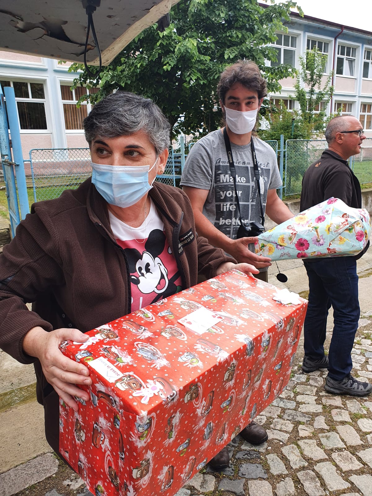 Jucării, dulciuri, cărți, creioane și carioci, toate ambalate în cutii colorate au ajuns astăzi la aproape 60 de copii din comunele Ciudanovița și Forotic (Caraș-Severin).