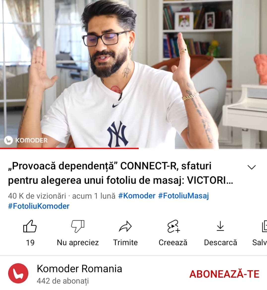 Connect-R: „Folosesc fotoliul Komoder de două ori pe zi, mai ales după ce vin de la alergat. Seară, când vin obosit, mă pun în fotoliu, îmi atașez telefonul la Bluetooth, îi dau drumul la o meditație în 400 de hertzi și cu tot cu masajul este extraordinar. Face parte din rutină mea de zi cu zi”