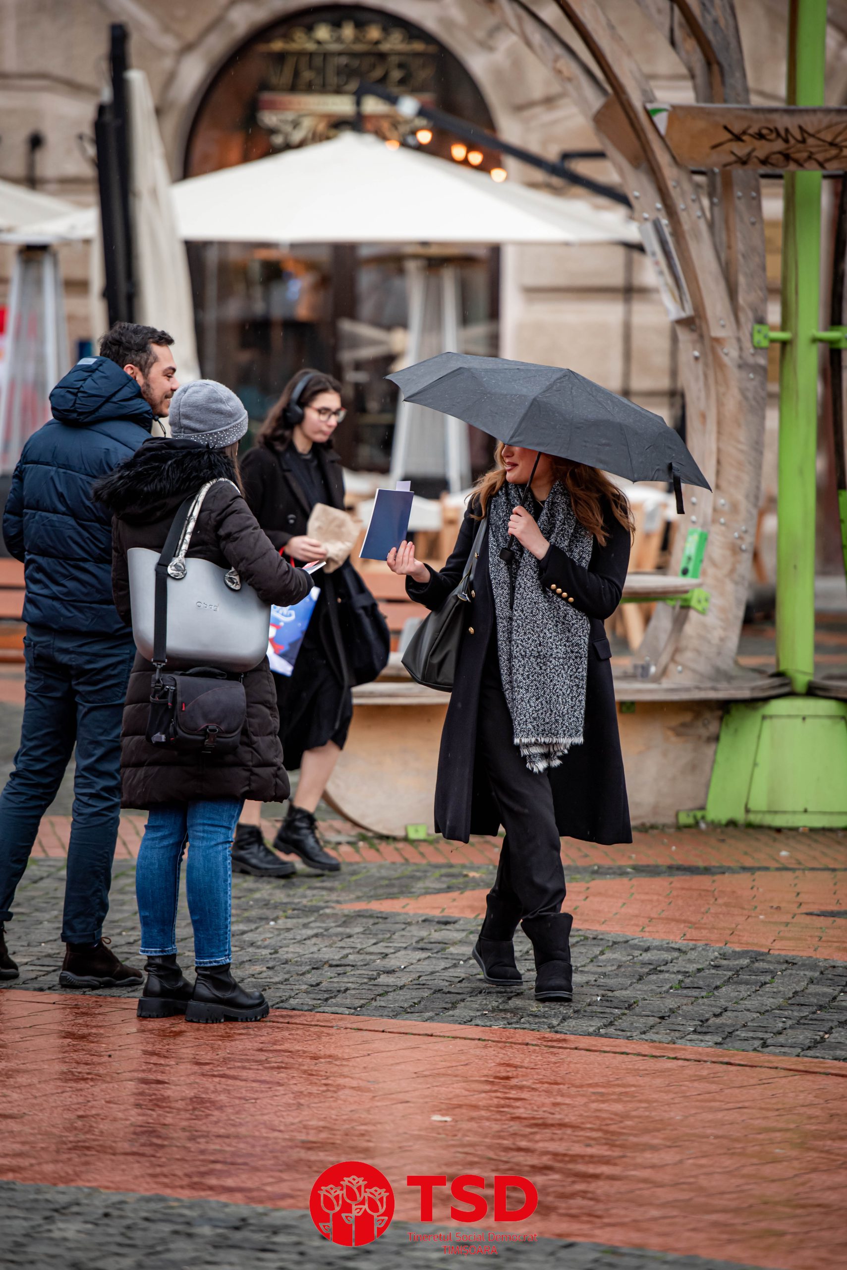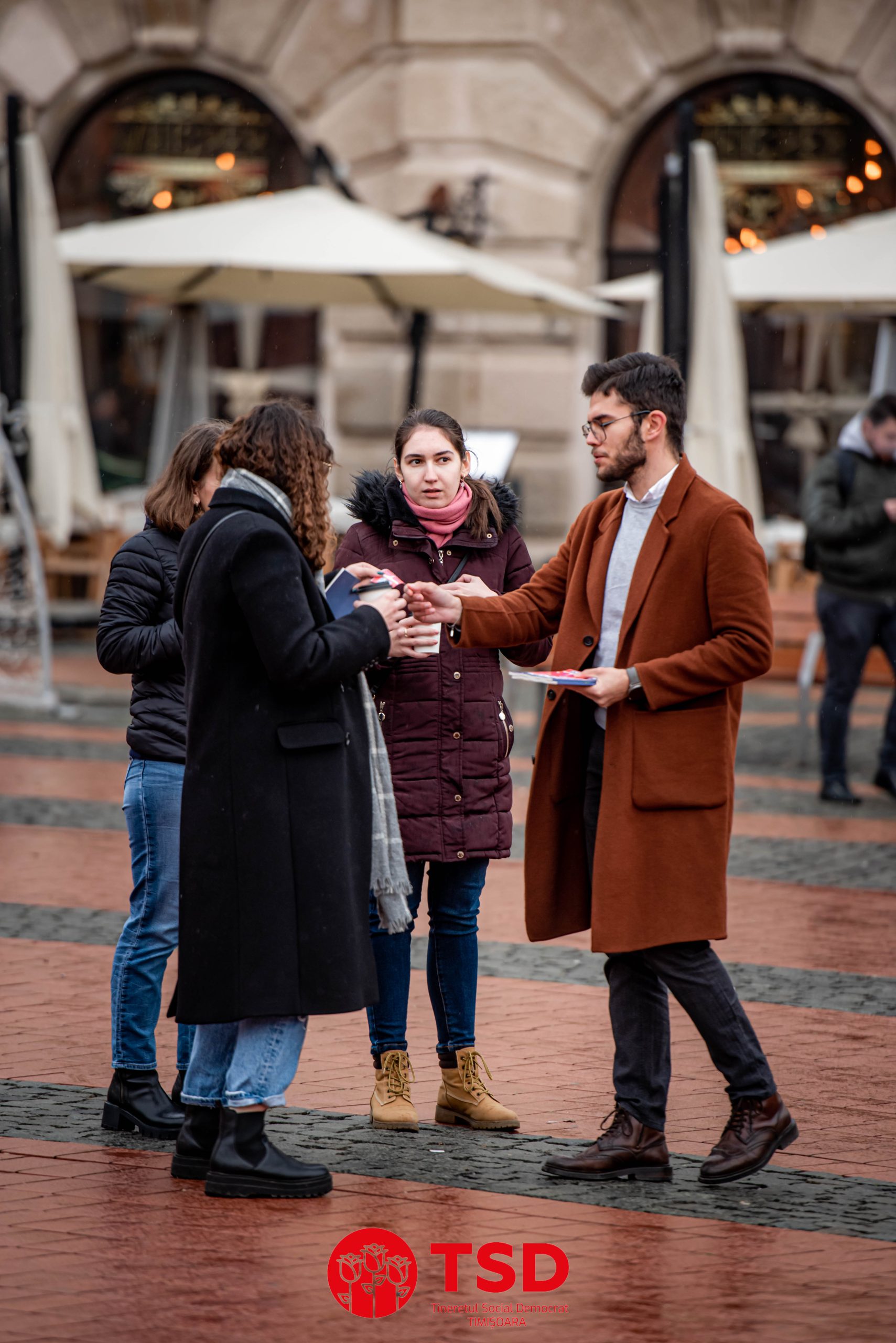 Având în vedere că pe data de 08 decembrie sărbătorim Ziua Constituției, am hotărât împreună cu toți colegii mei să organizăm o acțiune prin intermediul căreia să dăruim cetățenilor câte o Constituție. Interacțiunea cu oamenii a fost excepțională. Am discutat cu aceștia despre rolul și importanța legii fundamentale a țării și am atins subiecte importante, precum drepturile noastre constituționale.. – Geanny Mărinică, prim-vicepreședinte TSD Timișoara.