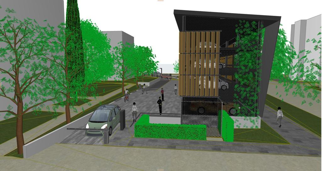 Parcarea va fi anvelopată, iar pe acoperișul parkingului se vor monta panouri fotovoltaice pentru producerea energiei electrice. Va fi racordată la utilități: energie electrică, telecomunicații și rețeaua de canalizare pluvială