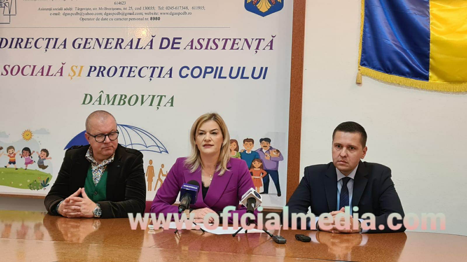 Direcția Generală de Asistență Socială și Protecția Copilului Dâmbovița, precizări făcute de Ionela Sandu, director general, în cadrul conferinței de presă. Declarații optimiste despre modul în care atât Consiliul Județean Dâmbovița, cât și DGASPC Dâmbovița s-au implicat în proiecte care să aducă o viață mai bună beneficiarilor.