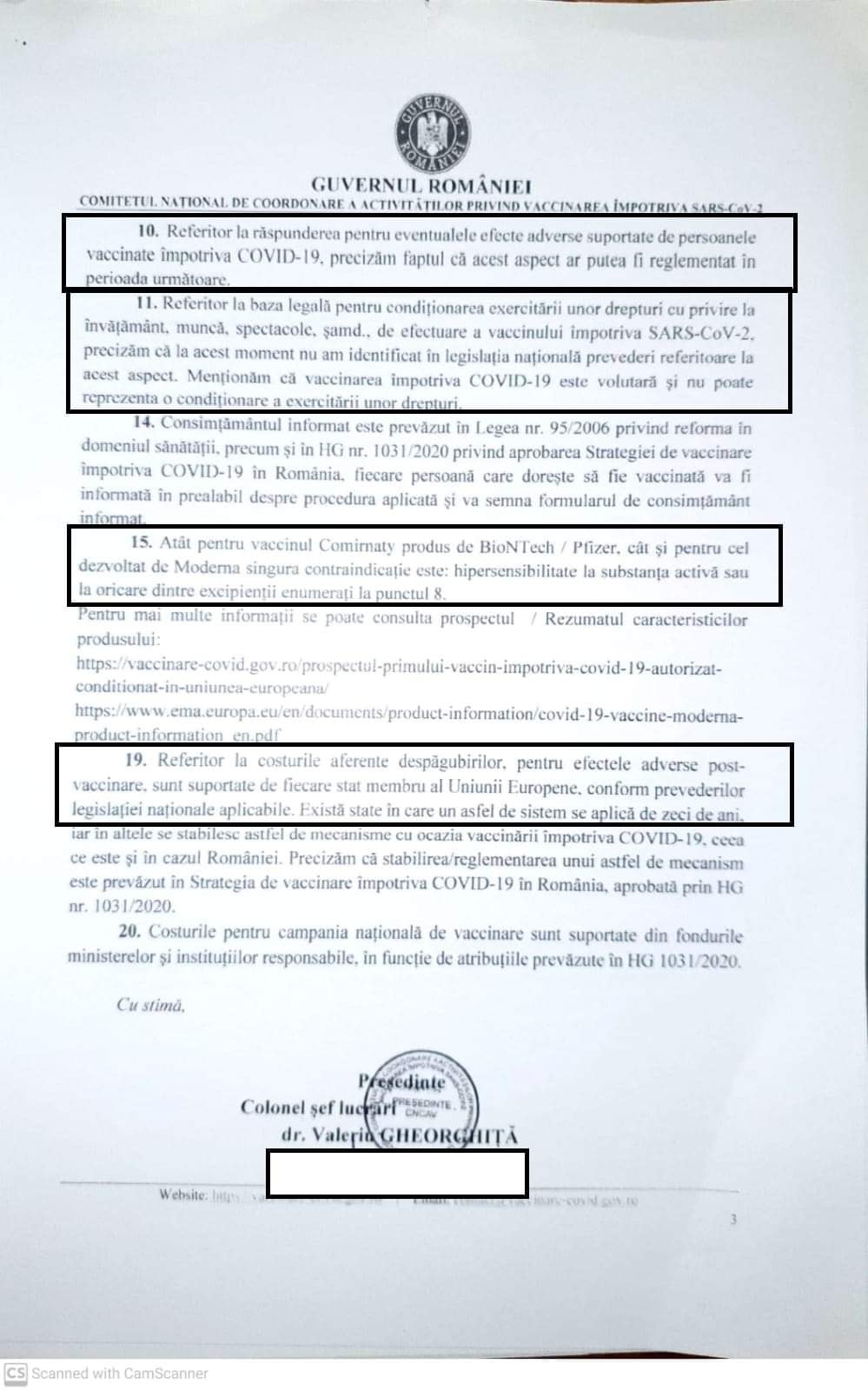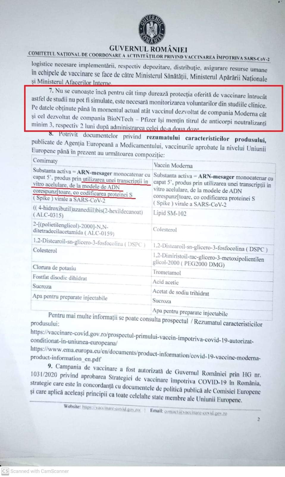 Cea mai tare informație, însă, este că Valeriu Gheorghiță, coordonatorul campaniei de vaccinare recunoaște, intr-o adresă oficială, că NU se cunosc toate efectele adverse si nici cât timp durează anticorpii generați de vaccinuri, întrucât “este necesară monitorizarea voluntarilor din studiile clinice”.