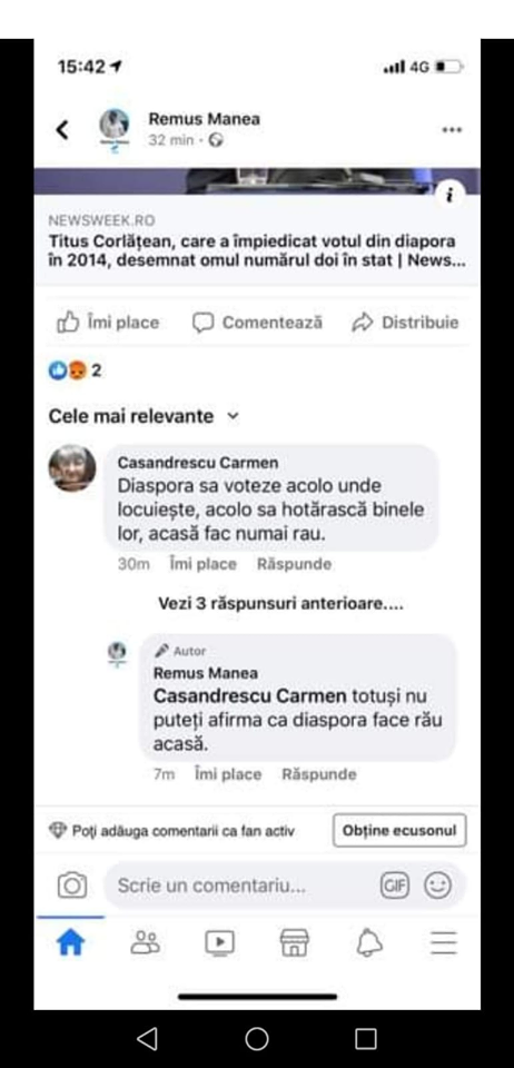 Menționăm că ulterior, membrul USR Dâmboviţa a șters comentariul de la postarea sa, pentru a nu mai tolera și propaga acest mesaj și mai mult.