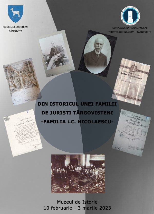 Consiliul Județean Dâmbovița, prin Complexul Național Muzeal „Curtea Domnească”, anunță deschiderea expoziției „Din istoricul unei familii de juriști târgovișteni – familia I. C. Nicolaescu”, vineri, 10 februarie 2023, la Muzeul de Istorie din Târgoviște, Calea Domnească nr. 187.