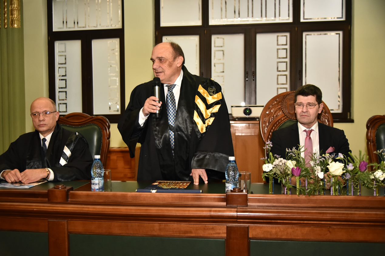 Ședința festivă a fost deschisă de președintele Senatului Universității Politehnica Timișoara, prof.univ.dr.ing. Radu Vasiu, care a evocat personalitatea dr. Christian Albrich von Albrichsfeld, dar și bunele relații stabilite cu UPT încă de la începutul sosirii sale la Timișoara, în calitate de director general al Continental România.
