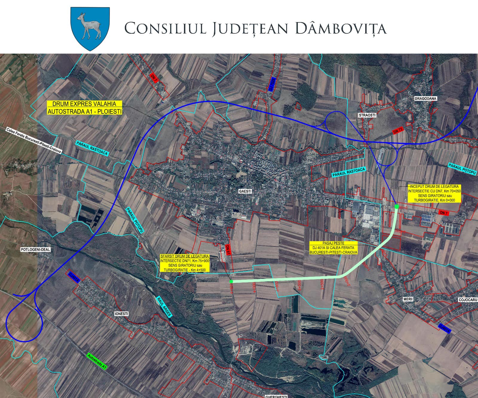 Proiectul „Drum de legătură pentru creșterea accesibilității în zona urbană a orașului Găești”, ce face parte din contractul „Drumuri de legătură ale DN 71 și DN 7 la Drumul Expres Valahia, Autostrada A1 – Ploiești, pentru creșterea accesibilității în zonele urbane ale municipiului Târgoviște și orașului Găești”, a primit avizul pentru studiul de prefezabilitate aferent, aceasta fiind o etapă specifică investițiilor de mare anvergură, premergătoare realizării studiului de fezabilitate.