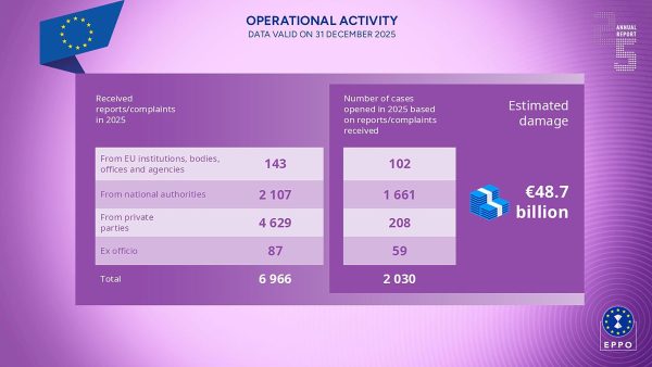 EPPO a primit și a procesat 6 966 de rapoarte și plângeri privind infracțiunile