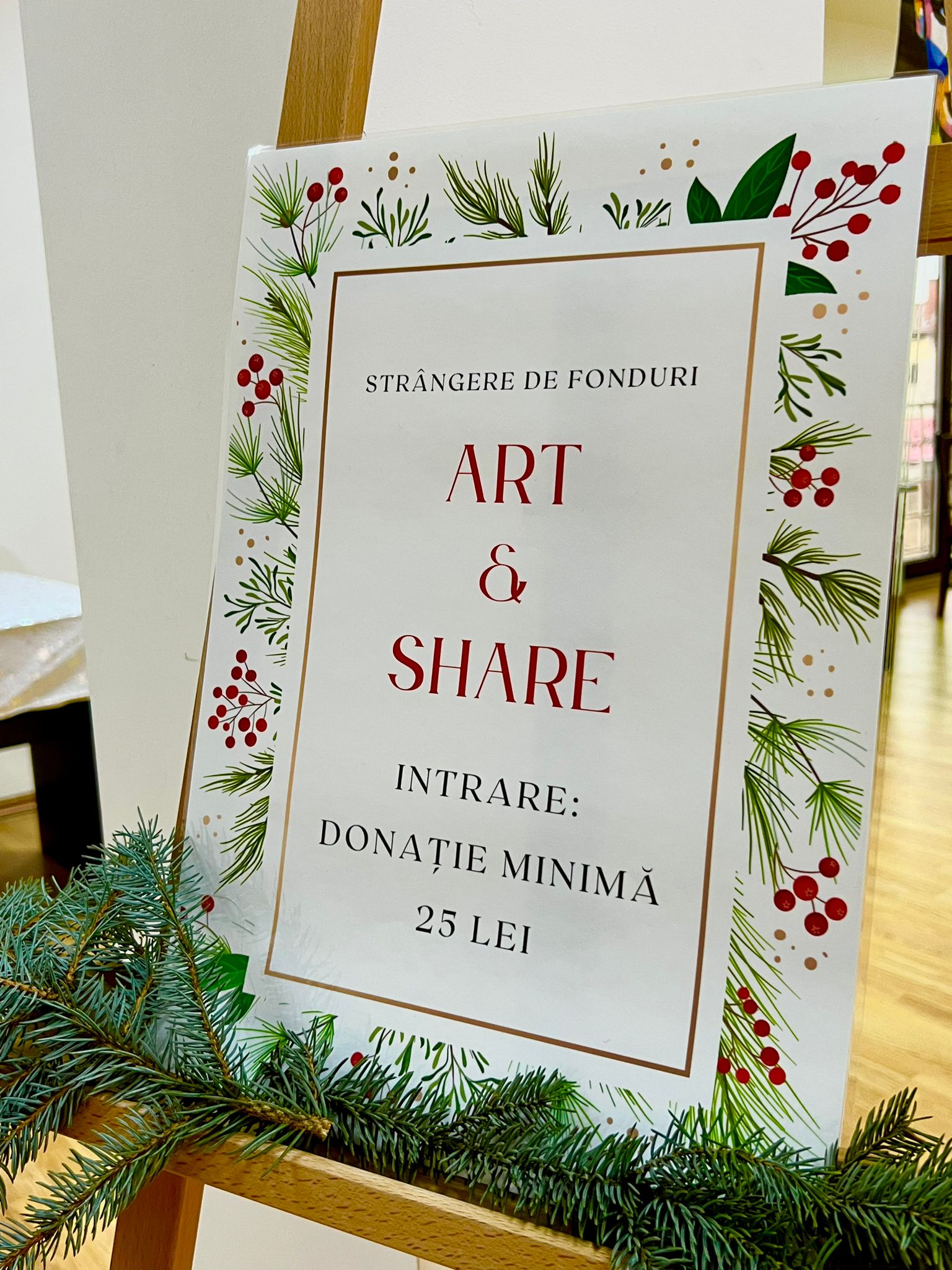 Art&Share este un proiect de suflet de la elevi pentru elevi. Acest proiect a avut ca scop strângerea de fonduri prin achiziționarea de tablouri pentru o cauză nobilă. Tablourile sunt pictate de către colega noastră Anamaria Staicu, dar și de către alți elevi. Pentru a intra în posesia lor, participanții la eveniment au donat diferite sume de bani. Cu donațiile strânse, vom oferi copiilor mai puțin norocoși, o zi de poveste și multe cadouri.