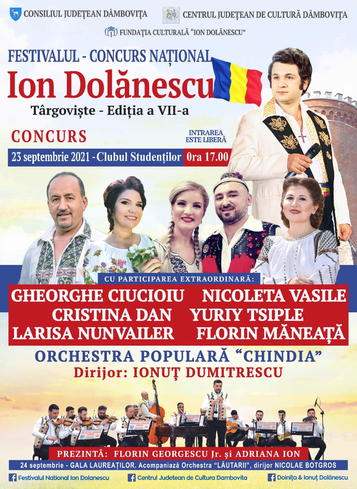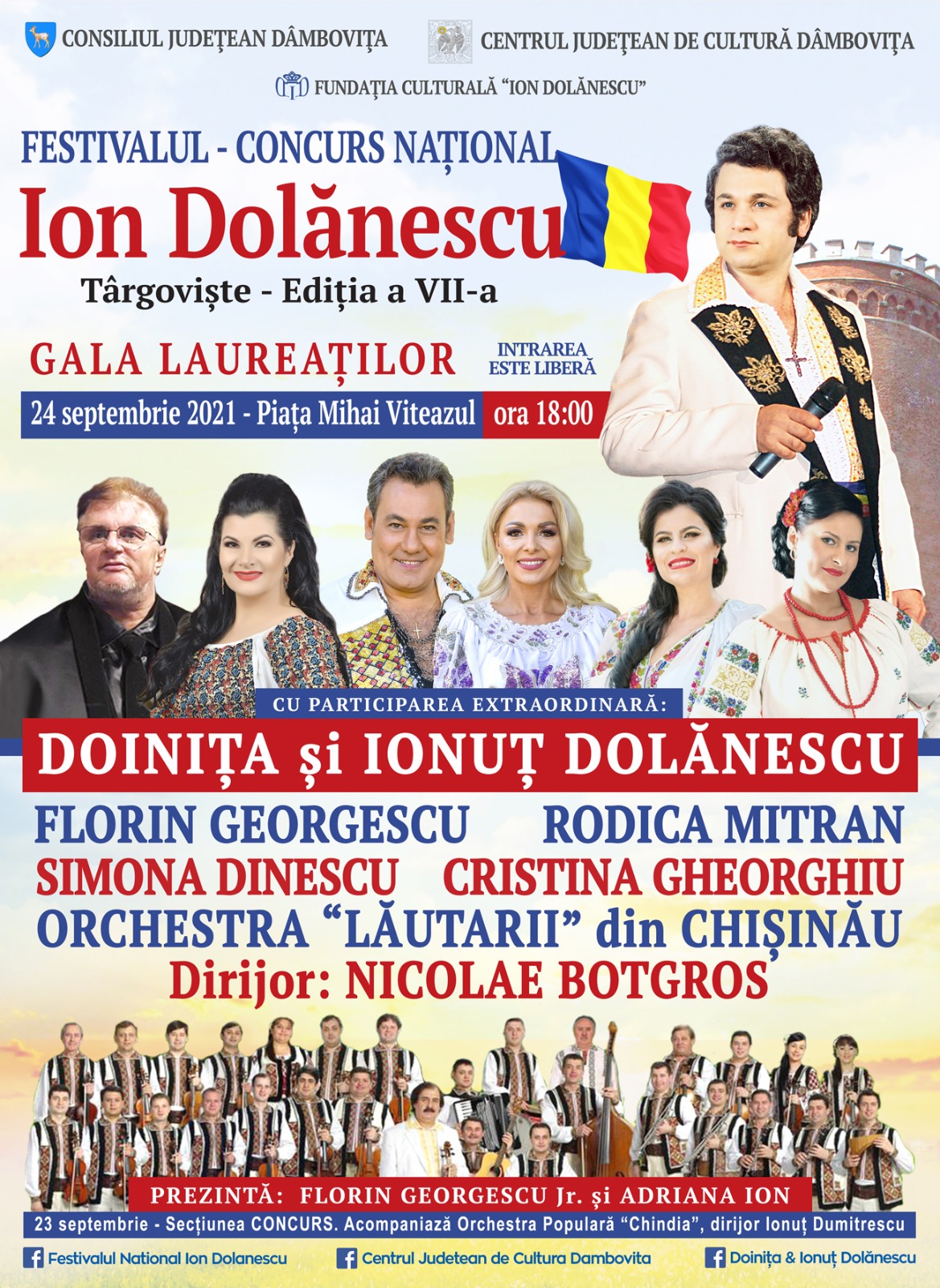 Consiliul Judeţean Dâmboviţa, prin Centrul Judeţean de Cultură Dâmboviţa, alături de Fundaţia Culturală Ion Dolănescu, vă invită în perioada 23-24 septembrie, în Târgoviște, la un eveniment cultural de marcă, un regal al cântecului popular românesc: Festivalul – Concurs Naţional „Ion Dolănescu”, ediția a VII-a.