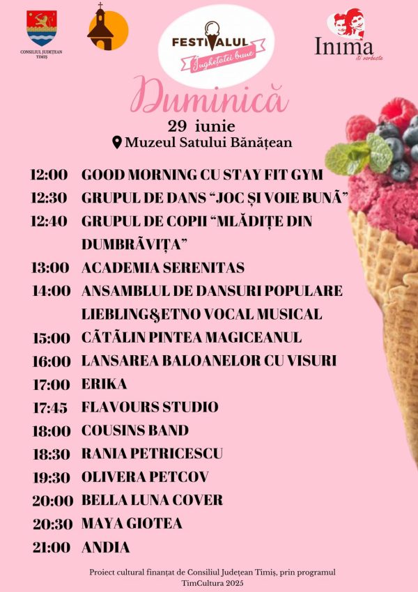 Azia început deja cea de-adoua ediție a Festivalului Înghețatei Bune, eveniment caritabil organizat de Asociația Inima Îți Vorbește, este gata de start în acest weekend, la Muzeul Satului Bănățean!