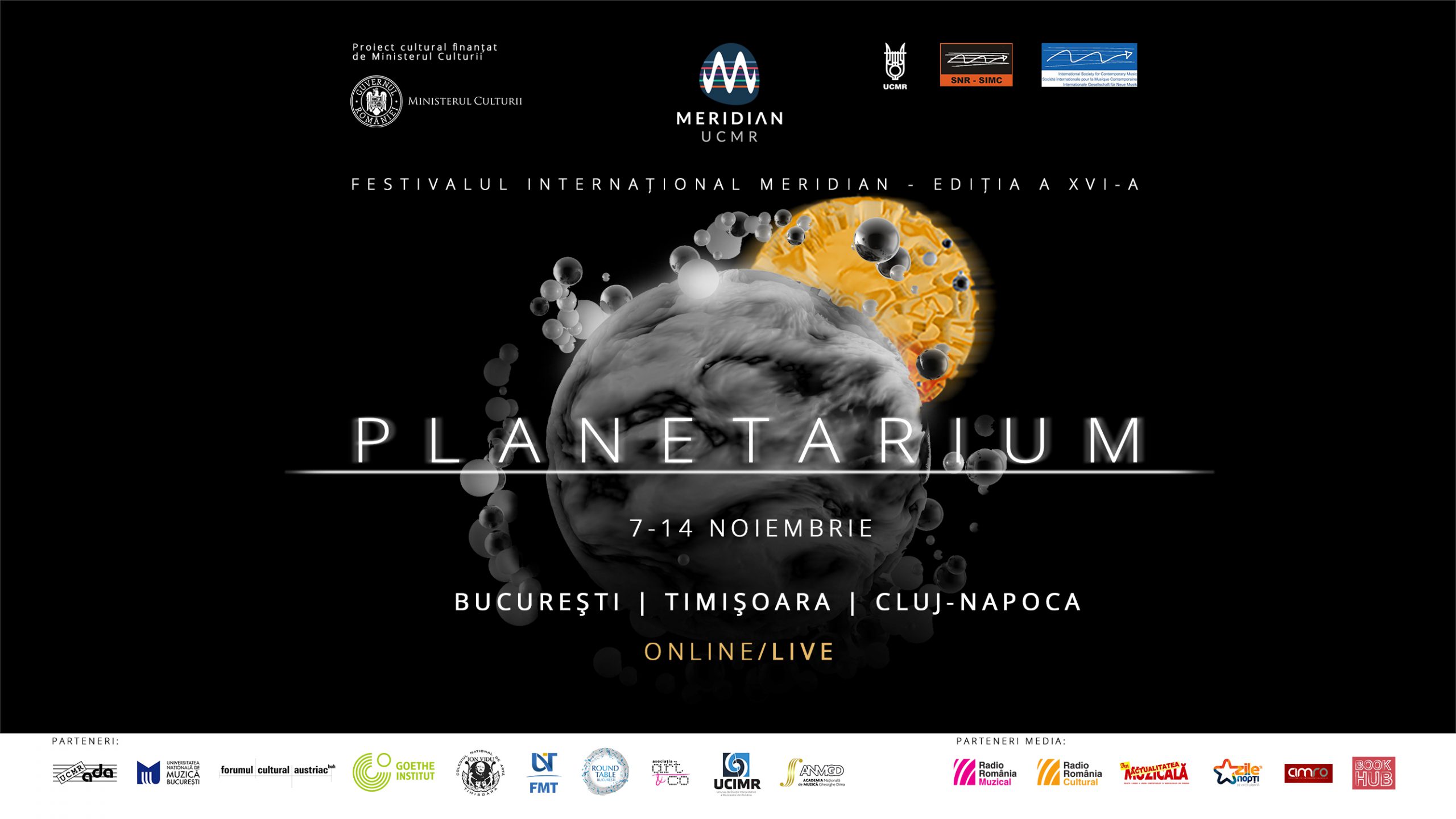 Cea de-a XVI-a ediție a unuia din cele mai importante festivaluri de muzică nouă din țară, Festivalul Internațional MERIDIAN, propune un PLANETARIUM imaginar în care vom putea urmări împreună, între 7 şi 14 noiembrie, mişcarea diverselor constelații şi curente sonore.