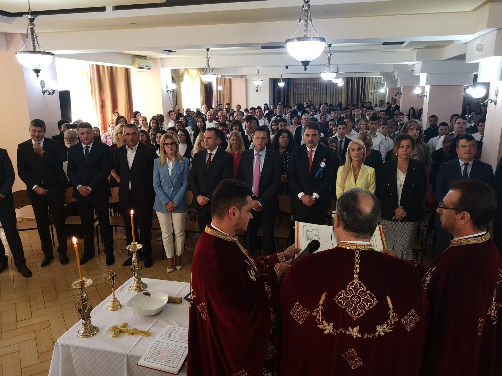 Ceremonia a fost inaugurată de intonarea imnului național și de oficierea unei slujbe de Te Deum, după care, Pr. dr. Ionuț Ghibanu, Vicar eparhial, a dat citire mesajului de binecuvântare al Înaltpreasfințitului Părinte Arhiepiscop și Mitropolit Nifon, în cadrul căruia fost evidențiat faptul că ”învăţământul teologic are un rol deosebit pentru misiunea pastorală a Ortodoxiei românești, deoarece, el formează, nu doar viitori slujitori ai Bisericii noastre, fie clerici, ori profesori de Religie, dar şi buni profesionişti, în orice alt domeniu de activitate, trăitori credibili ai valorilor Evangheliei Mântuitorului Iisus Hristos”.