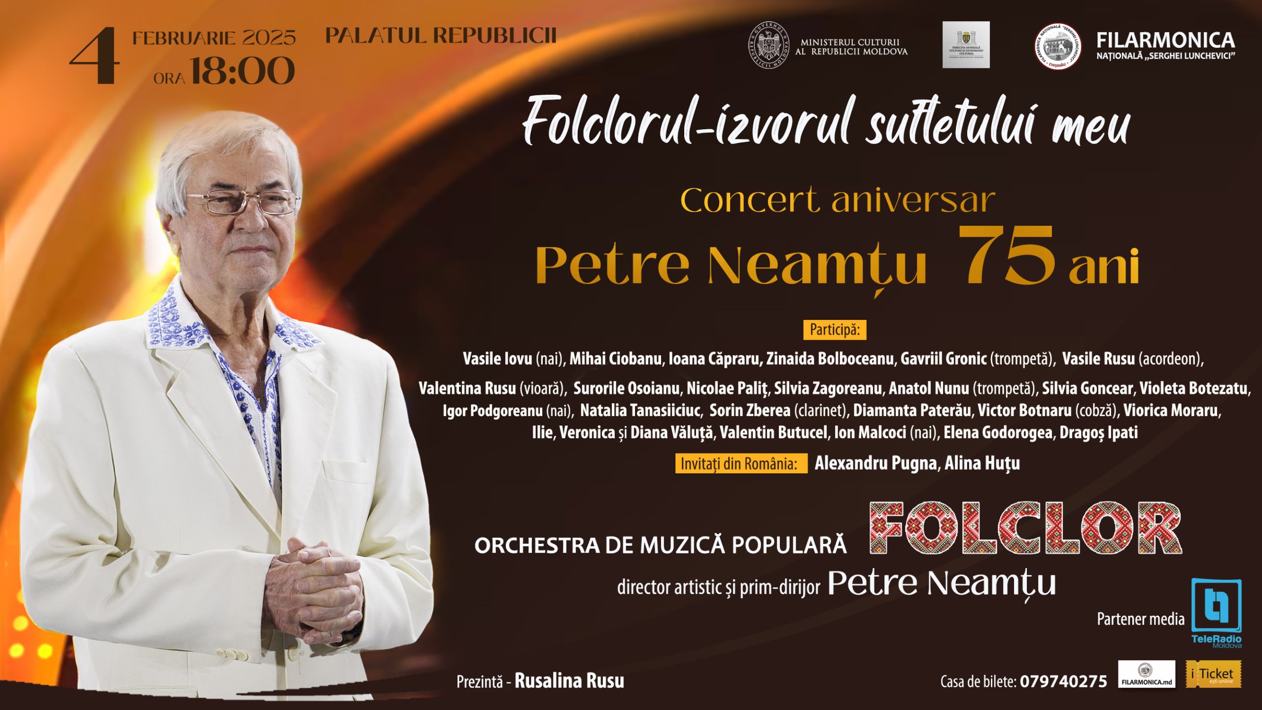 Vă așteptăm pe 4 februarie, ora 18:00, Palatul Republicii la Concertul aniversar – Petre Neamțu 75 ani cu genericul „FOLCLORUL – IZVORUL SUFLETULUI MEU”