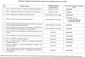 Agenția pentru Finanțarea Investițiilor Rurale a anunțat un calendar ORIENTATIV al sesiunilor de depunere a proiectelor pentru cele mai așteptate lininii de finanțare din cadrul Programului Național de Dezvoltare Rurală (PNDR), pentru perioada tranzitorie, în valoare totală de 3 miliarde de euro.