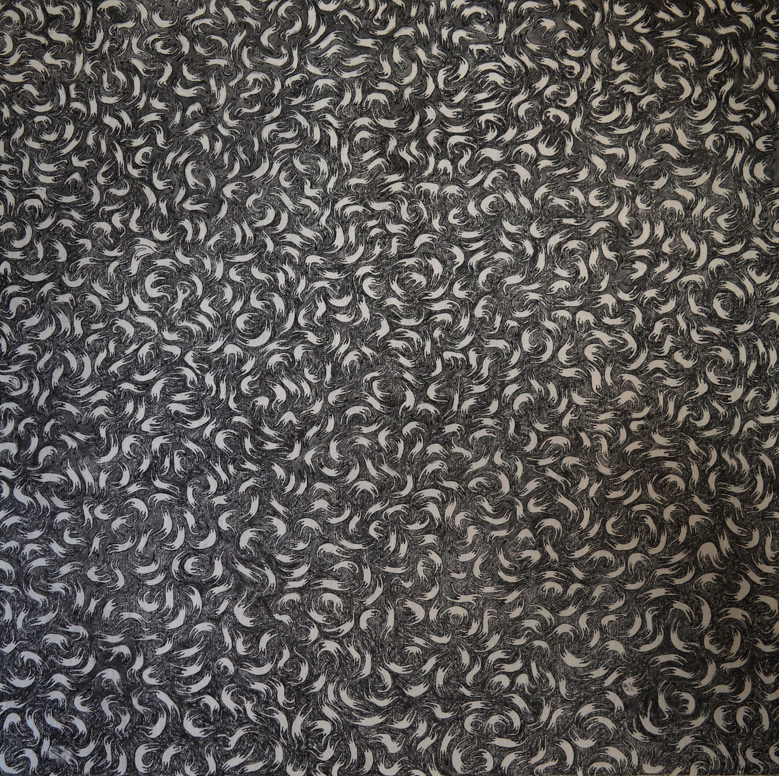 Aici și acum, în acest context vizual, loc pentru gol nu există. Pânzele sunt pictate pe întreaga lor suprafață. Schițări ale unor ființe umane apar aliniate, în valuri, vibrații, rostogoliri, și îngrămădiri.