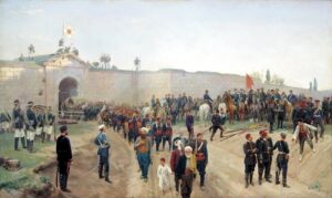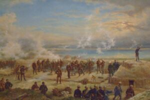 La 12/24 aprilie 1877 Rusia declară război Turciei, iar în iunie 260.000 de soldați ruși și 802 tunuri încep să traverseze teritoriul României. Armata țaristă, protejată de flotila românească, a trecut Dunărea și a intrat în Dobrogea.