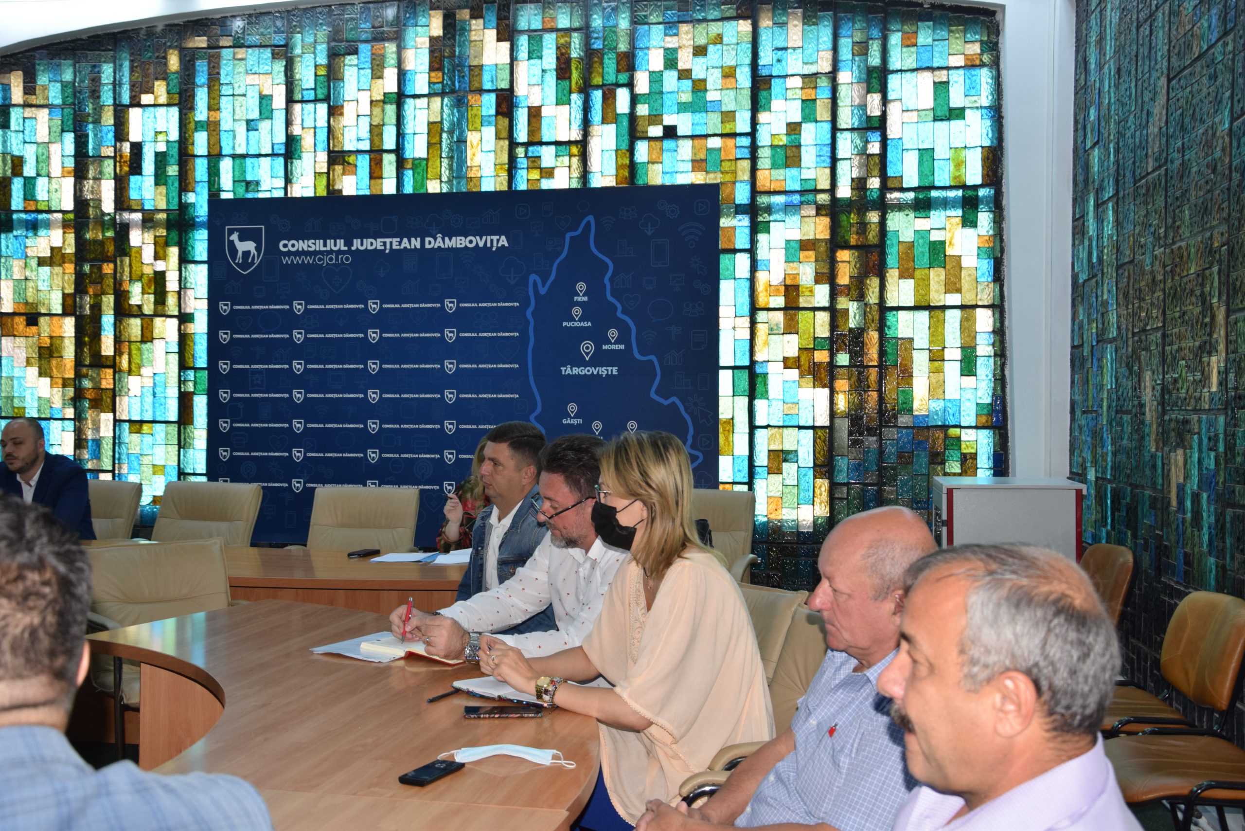 Președintele Consiliului Județean Dâmbovița (CJD), Corneliu Ștefan, a avut astăzi, 1 iulie 2021, o întâlnire cu reprezentanţii constructorilor care desfăşoară activităţi în domeniul modernizării şi reparaţiilor infrastructurii rutiere din județ, în cadrul asocierilor cu unitățile administrativ-teritoriale, unde CJD este parte contractantă.