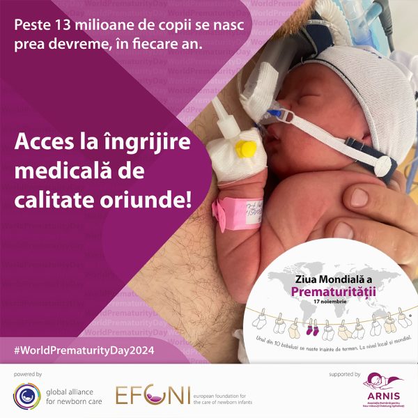 Ziua Mondială a Prematurității, 17 noiembrie, inițiată de Global Foundation for the Care of Newborn Infants – GFCNI, este de anul acesta recunoscută oficial de Organizația Mondială a Sănătății (WHO) ca zi de interes global pentru atragerea atenției asupra problemelor nou-născuților.