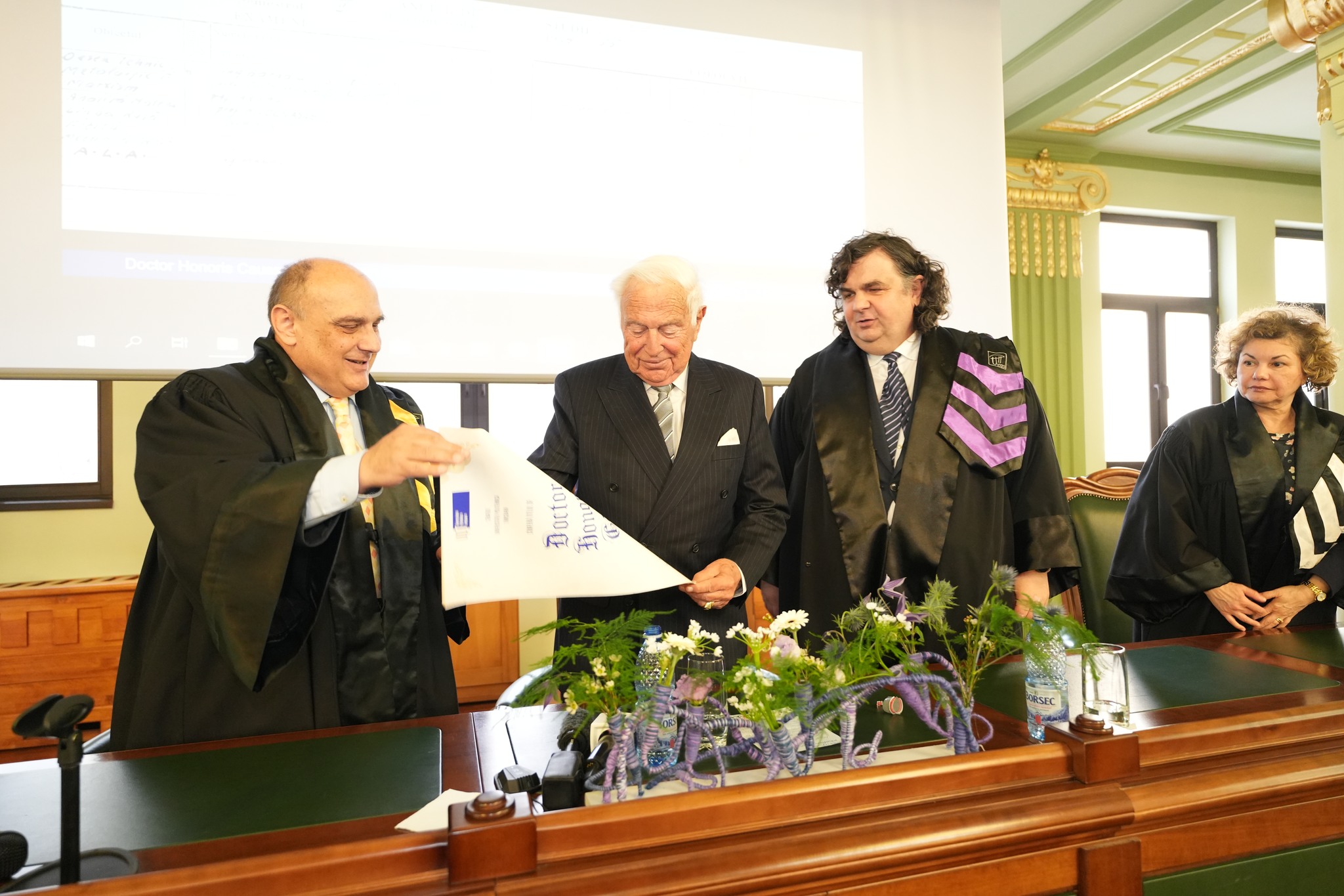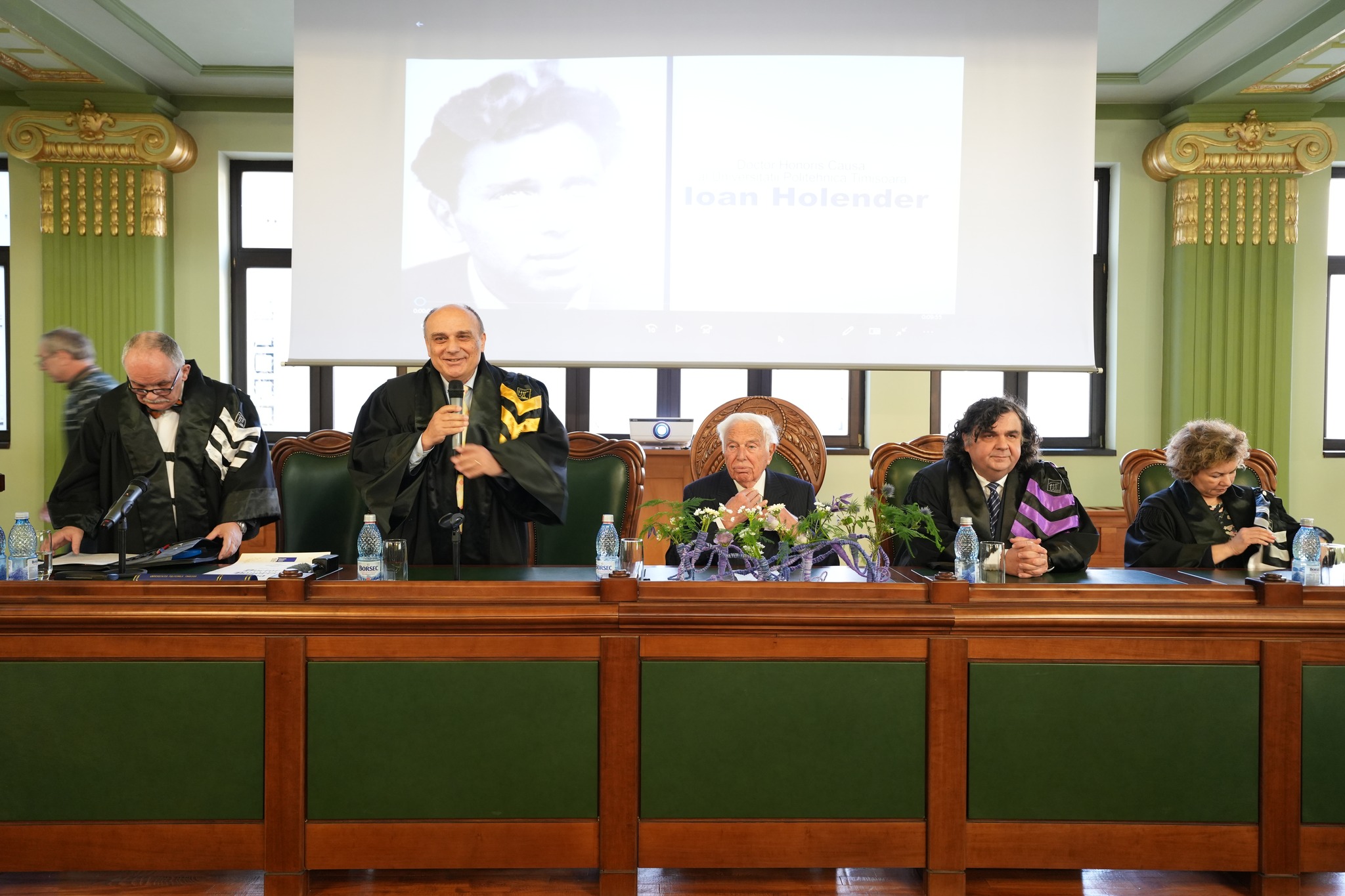 Senatul Universităţii Politehnica Timişoara s-a reunit joi, 16 februarie 2023, în şedinţă festivă în vederea decernării celei mai înalte distincții pe care o poate acorda o instituție de învățământ superior, titlul de Doctor Honoris Causa, domnului Ioan Holender, fost student al Politehnicii timișorene, artist liric (bariton), impresar şi manager cultural, cel mai longeviv director al Operei din Viena (1992-2010), preşedinte de onoare şi director artistic al Festivalului „George Enescu” (2003-2015), Cetăţean de Onoare al Municipiului Timişoara. Pe lângă membrii comunității academice a Universității Politehnica Timișoara, la eveniment au participat ministrul culturii, Lucian Romașcanu, primarul Timișoarei, Dominic Fritz, prieteni din lumea artistică.