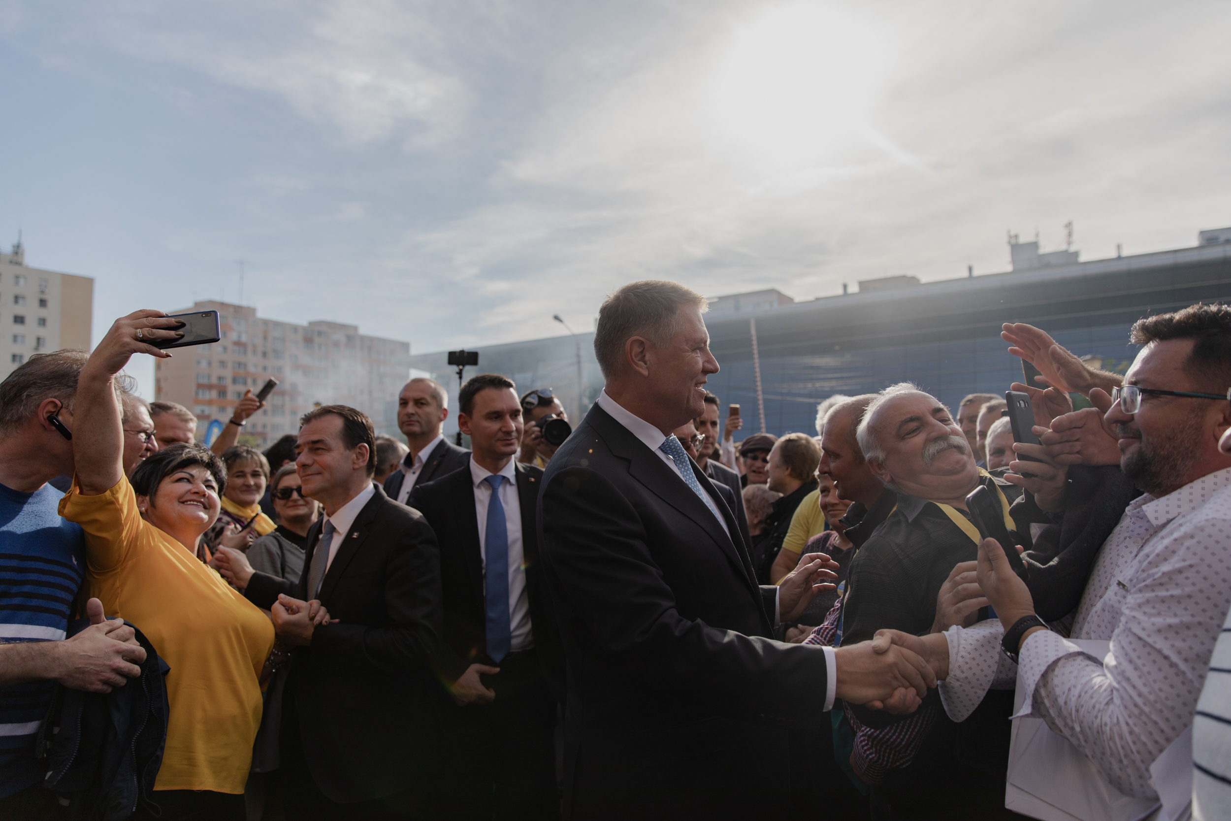Președintele Klaus Iohannis și președintele PNL Ludovic Orban, însoțiți de Nicoale Robu, primarul liberal din Timișoara, au mers printre bănățeni, în drumul spre Adunarea Regională a organizațiilor PNL din regiunea Vest.