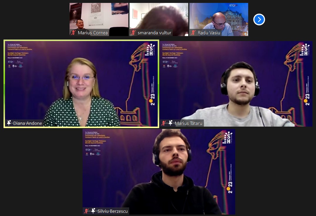 Aplicațiile câștigătoare ale concursului ISHSC 2021 au fost prezentate online celor peste 130 de participanți. Evenimentul a fost adresat studenților din Universitatea Politehnica Timișoara și nu numai și a reunit echipele de implementare a proiectului Spotlight Heritage Timișoara, prin echipa Centrului de e-Learning UPT, a Centrului Multimedia UPT, a Muzeului Național al Banatului, dar și partenerii și colaboratorii în dezvoltarea proiectului, printre care prof. Smaranda Vultur, cea care a făcut posibilă relatarea istoriilor personale ale locuitorilor din cartierul Fabric de altădată, intervievați de echipa Grupului de Istorie Orală și Antropologie Culturală, pe care îl coordonează. Cei peste 130 de participanți prin Zoom și Facebook au avut ocazia să descopere expozițiile, aplicațiile digitale și evenimentele organizate în jurul cartierului Fabric în cursul anului 2021, atracția serii fiind aplicațiile de realitate virtuală care au fost selectate câștigătoare în cadrul concursului International Spotlight Heritage Student Contest 2021, prezentate în premieră de studenții UPT Marius Tătaru și Silviu Berzescu.